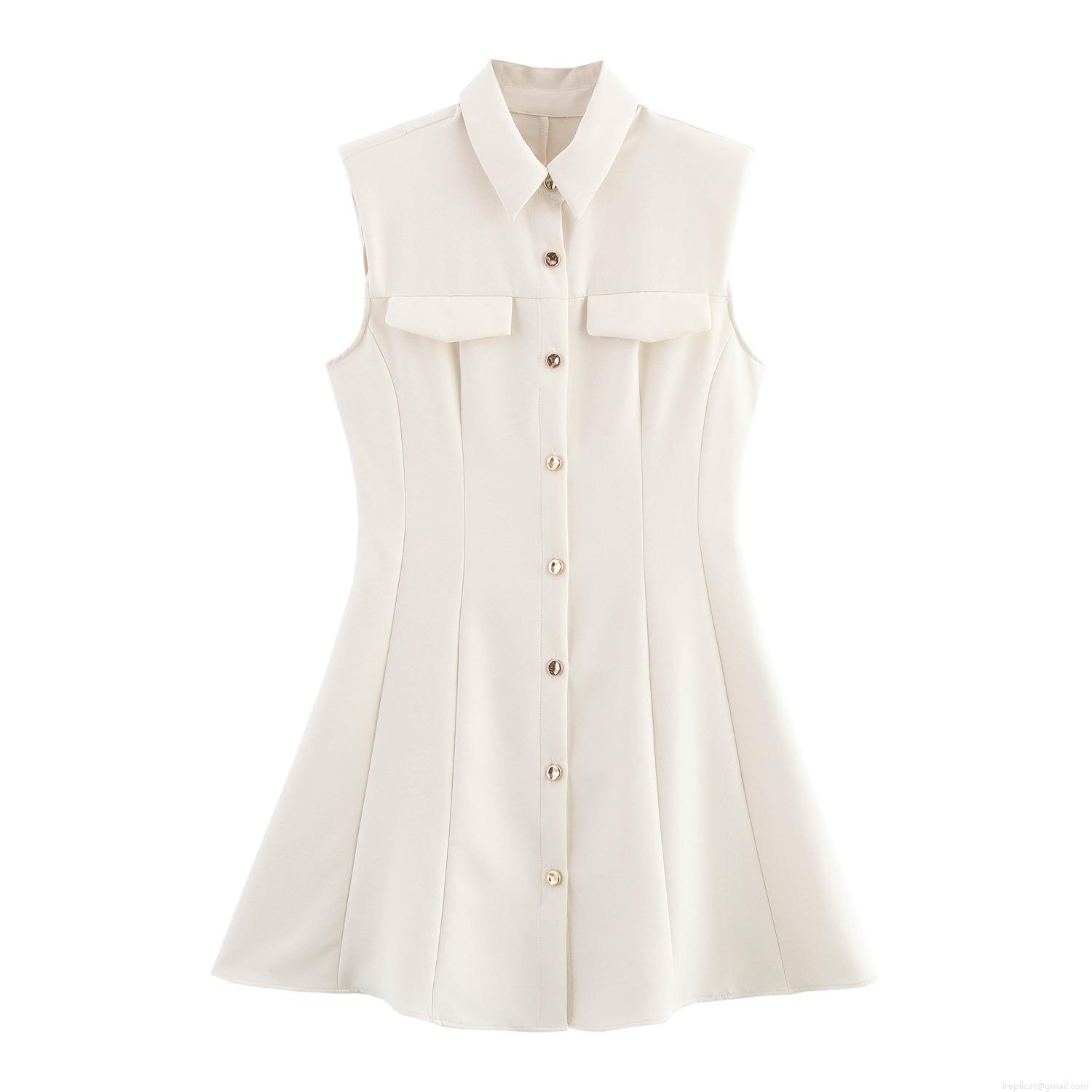 • Women's Sleeveless Shoulder Pad Mini Dress Polyester Lapel Gold Button Down Commute Style Slim Fit A-Line Short Dress Office Lady Elegant Summer Outfits
