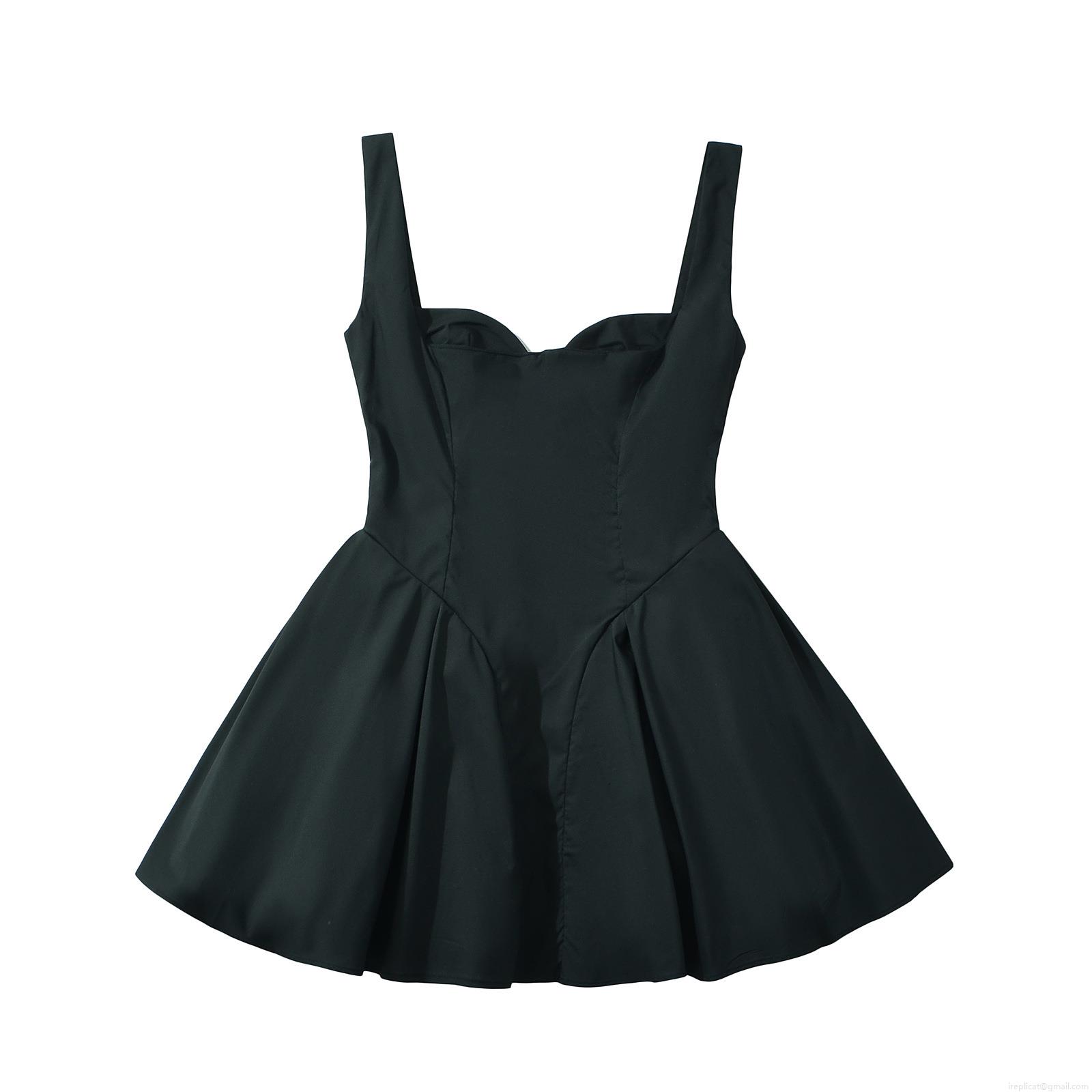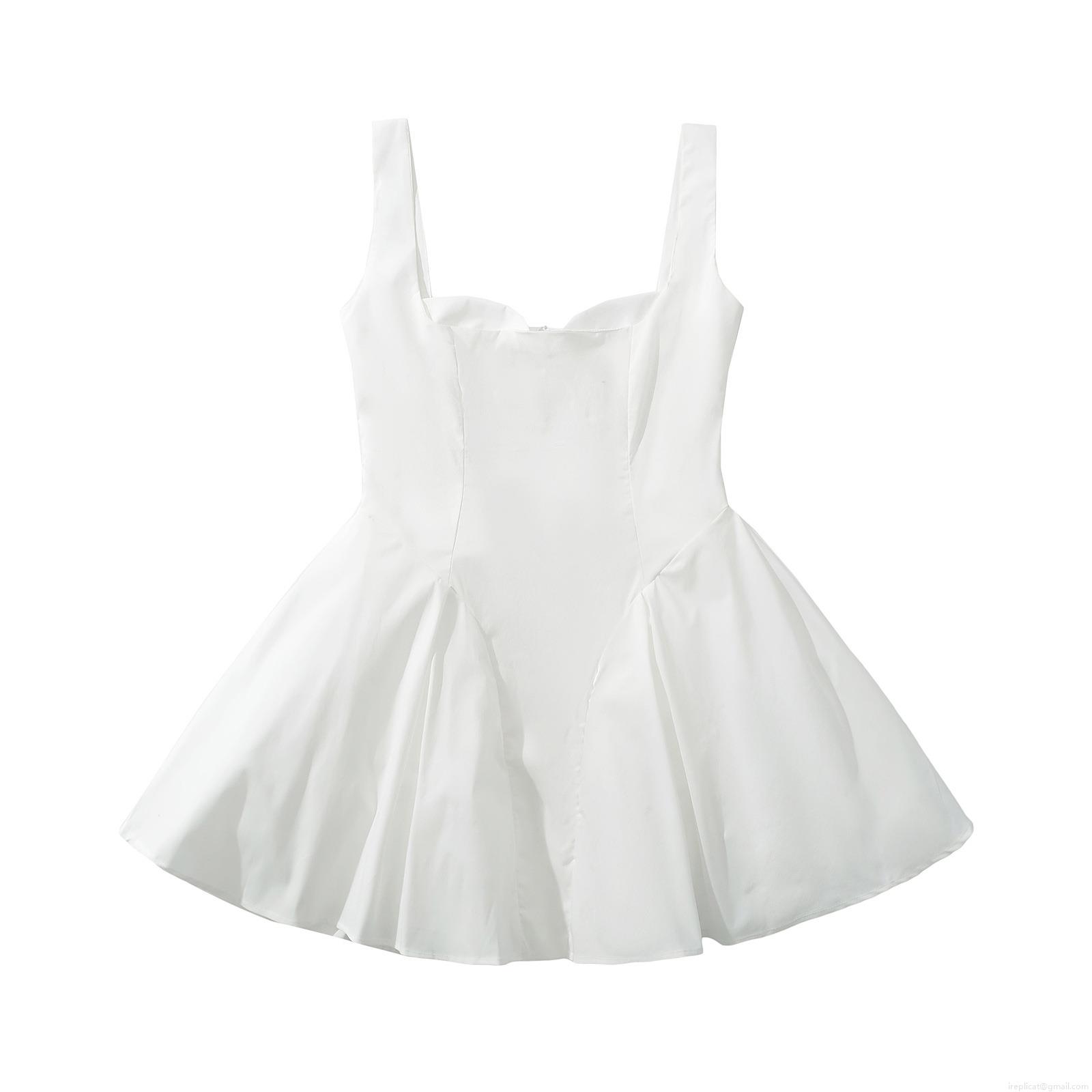 • Women's Sleeveless Square Neck Mini Dress Polyester Cotton Slim Fit A-Line Short Dress for Party Elegant Celebrity Style Solid Color Summer Back Zipper Dress