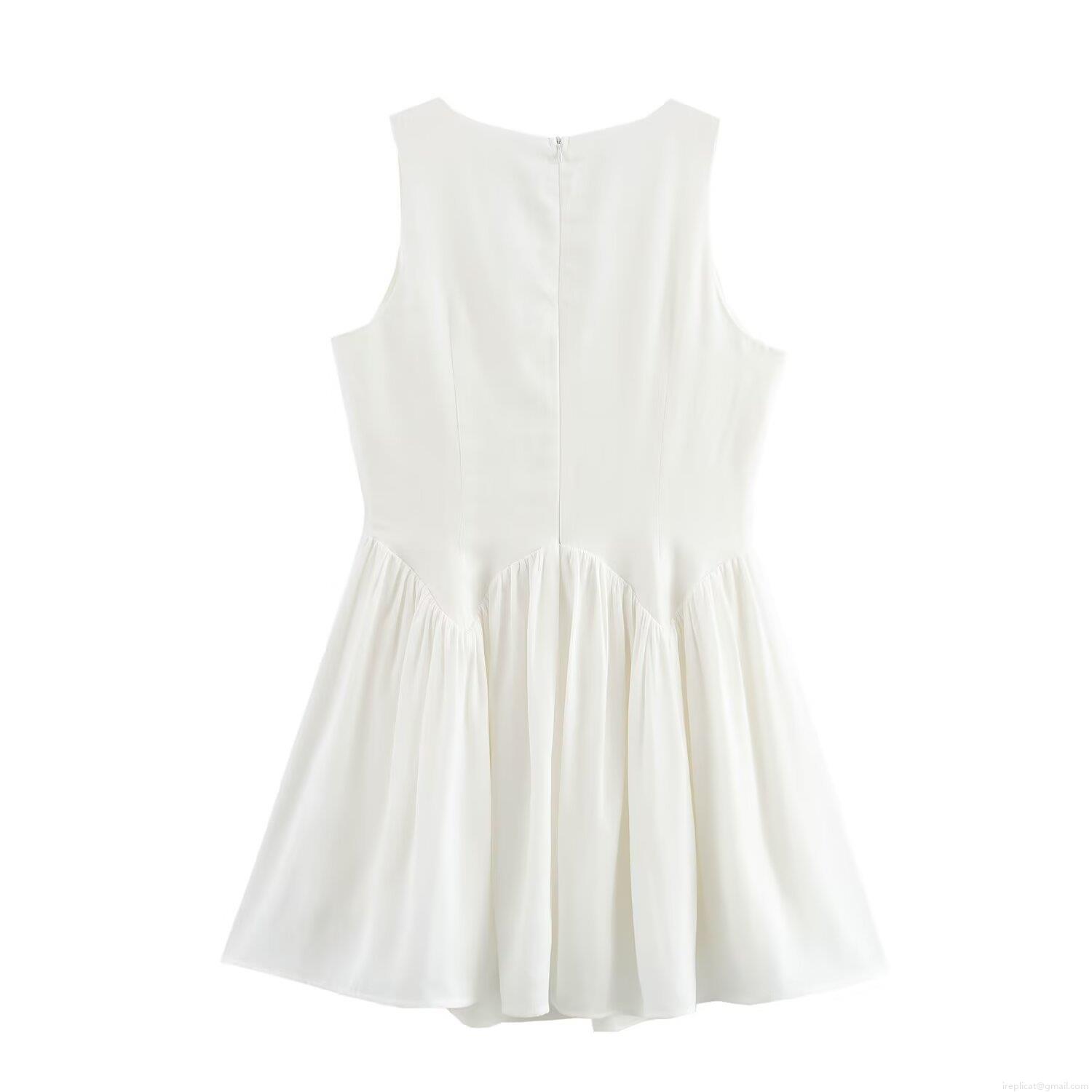 Women's Sleeveless V-Neck Mini Dress With Front Bow Tie Knots Polyester A-Line Summer Casual Sexy White Short Dress Patchwork Sundress For Ladies Streetwear