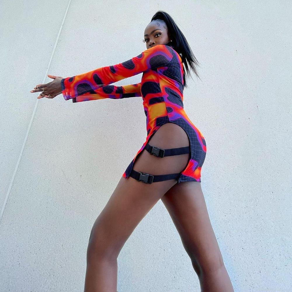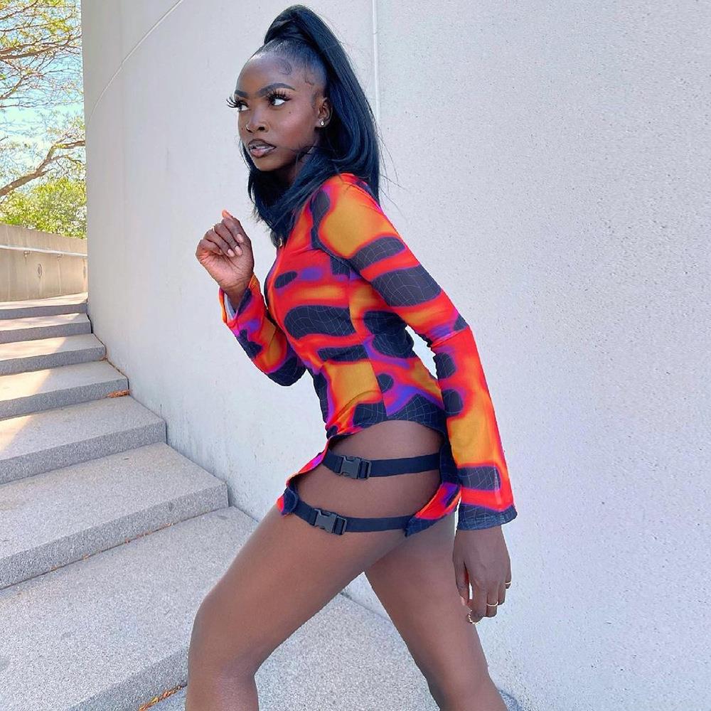 Women's Slim Fit Flame Print Long Sleeve Mini Dress With Side Cutout Buckle Decoration Sexy Streetwear Bodycon Clubwear Party Dress