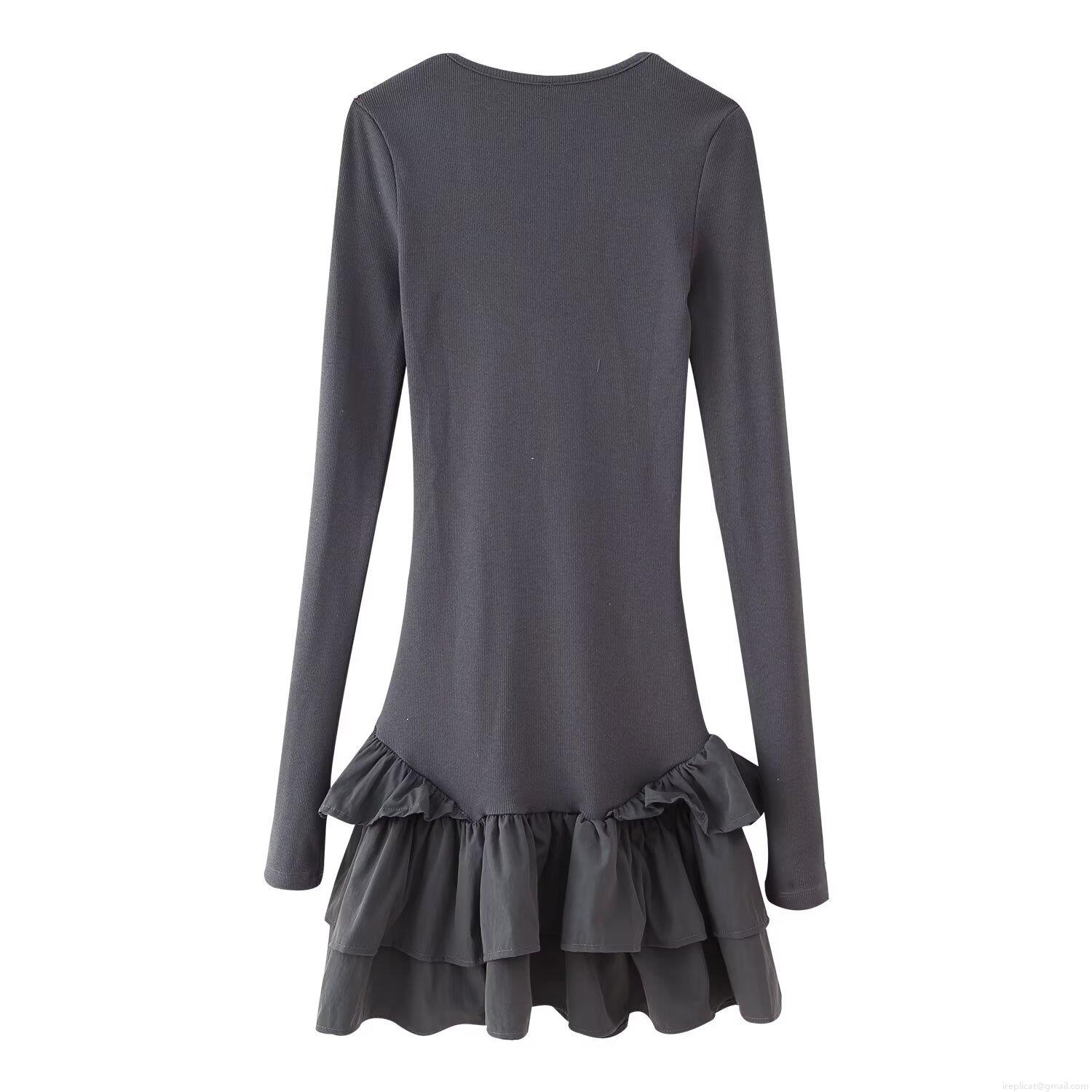 • Women's Slim Fit Ribbed Knit Long Sleeve Dress Layered Ruffle Hem U-Neck Mini Dress Elegant Solid Color Tiered Cake Dress For Party Dating Sexy Bodycon Spring Fall Clothing