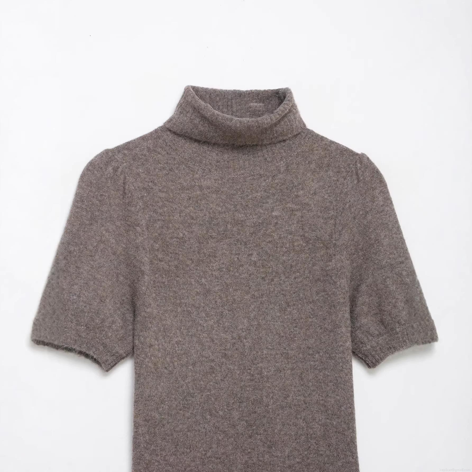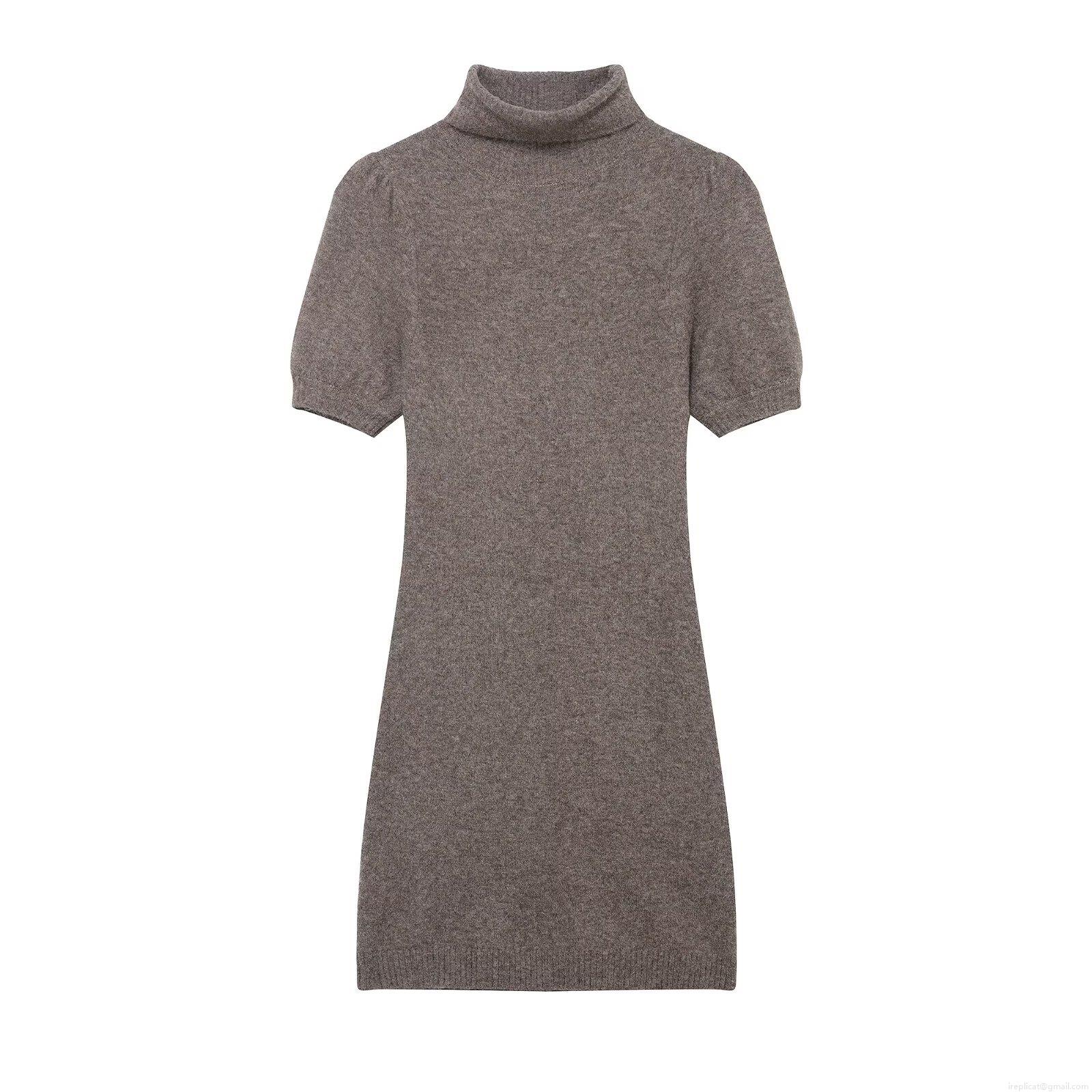 • Women's Solid Color High Neck Puff Short Sleeve Knit Mini Dress Elegant Slim Fit Pullover Stretchy Bodycon Short Gown For Autumn Winter 100% Polyester Streetwear