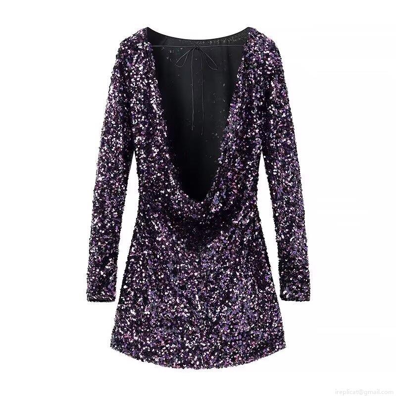 • Women's Sparkly Sequin Long Sleeve Mini Dress Elegant Backless Bodycon Party Dress Sexy Clubwear Evening Gown Polyester Material