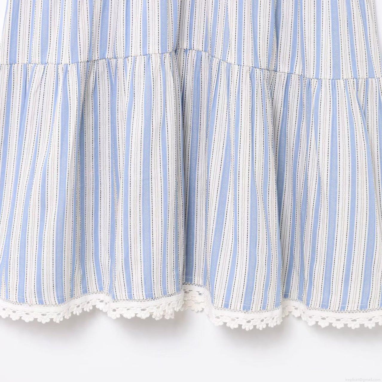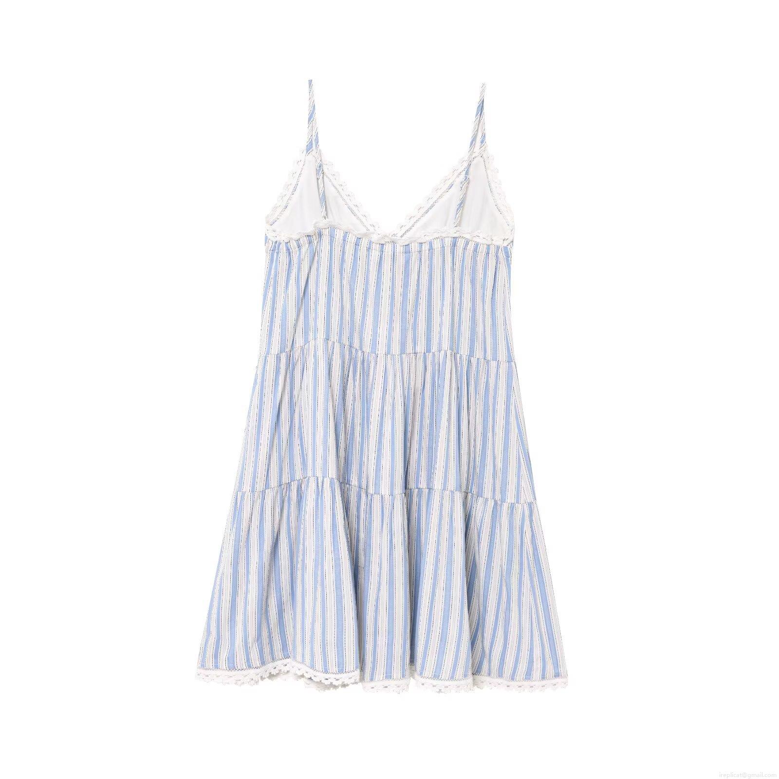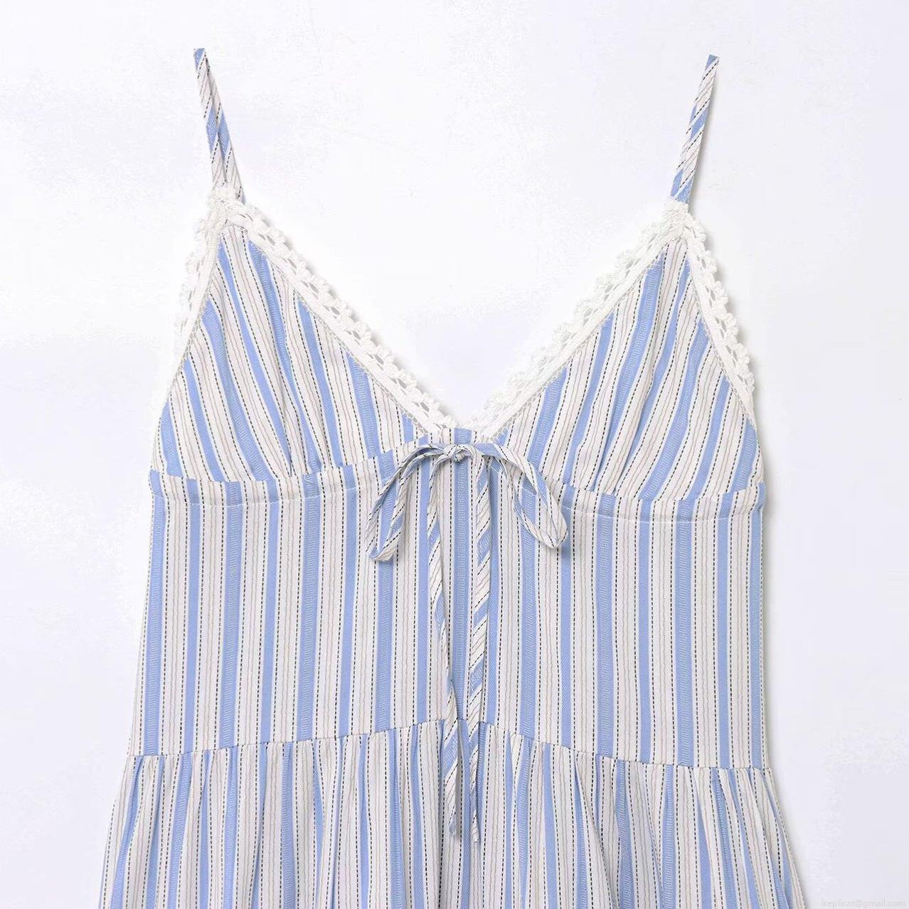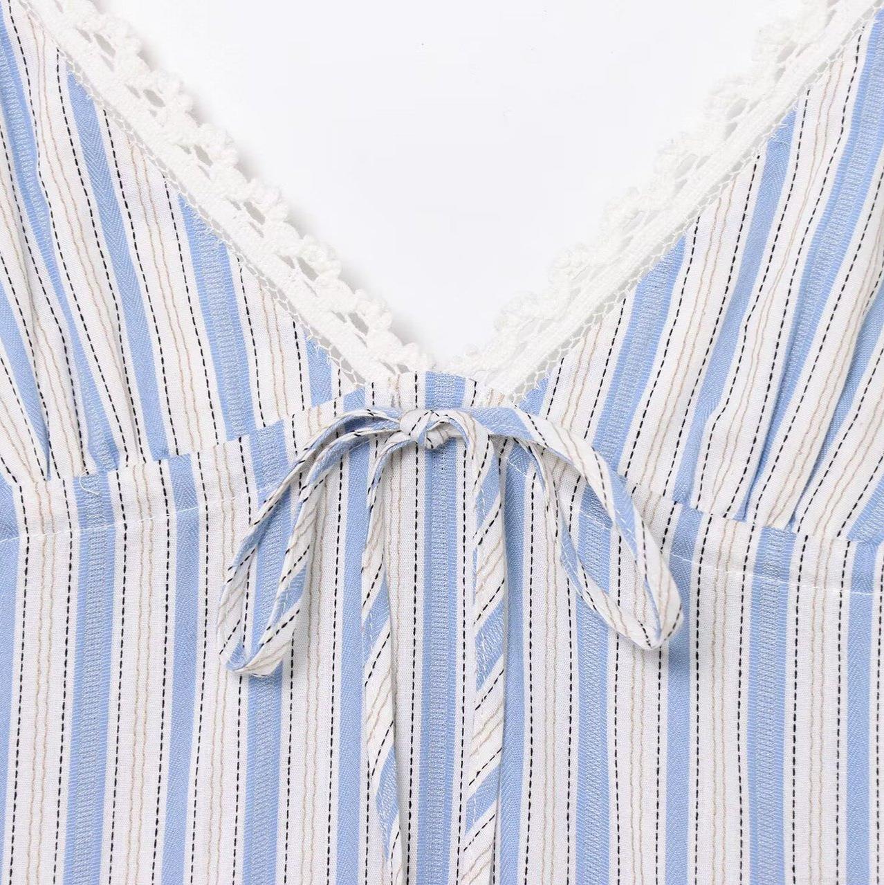 • Women's Striped Lace Camisole Dress Light Blue White Tiered Mini Dress With Bow Sexy V Neck Sleeveless Summer Sundress For Dating Vacation