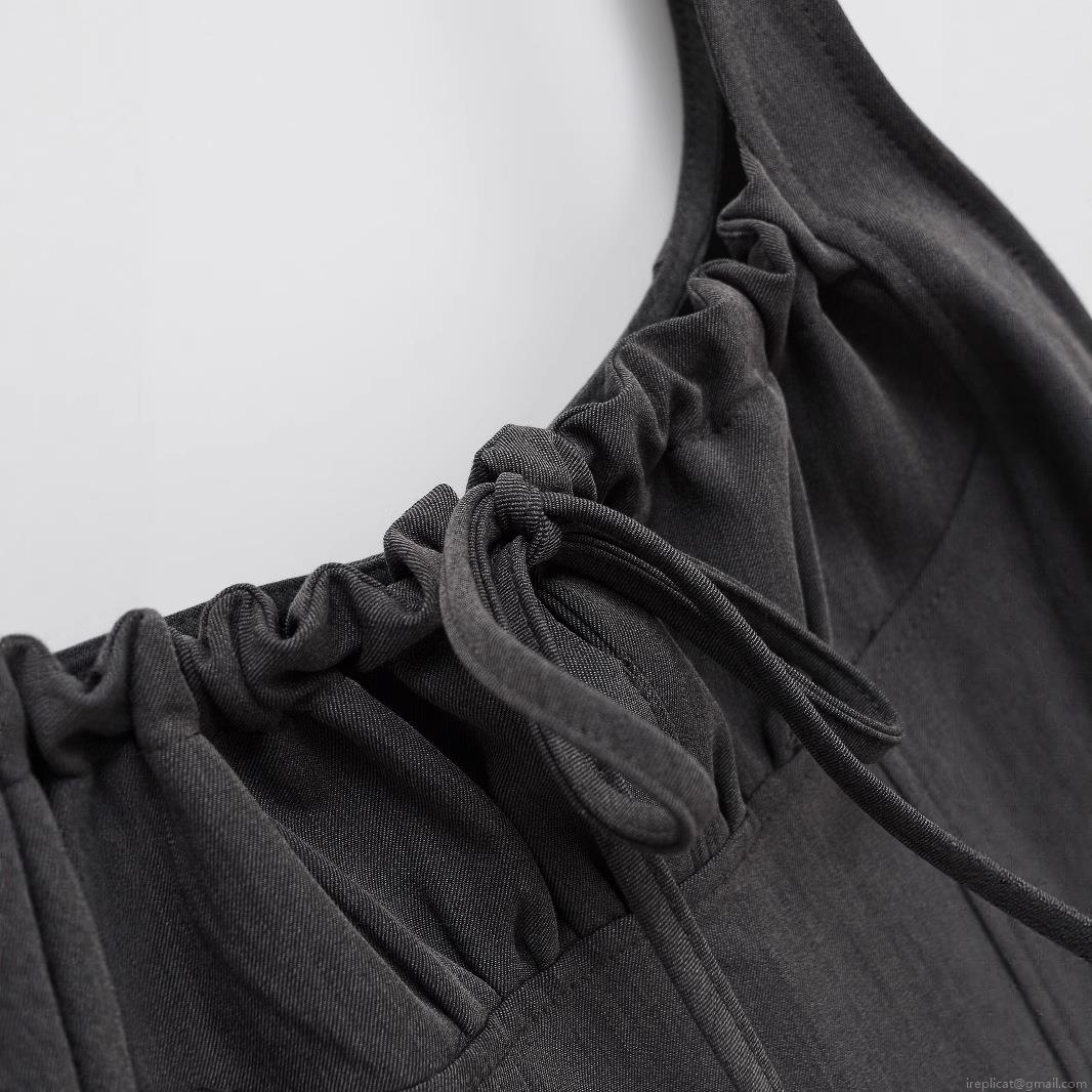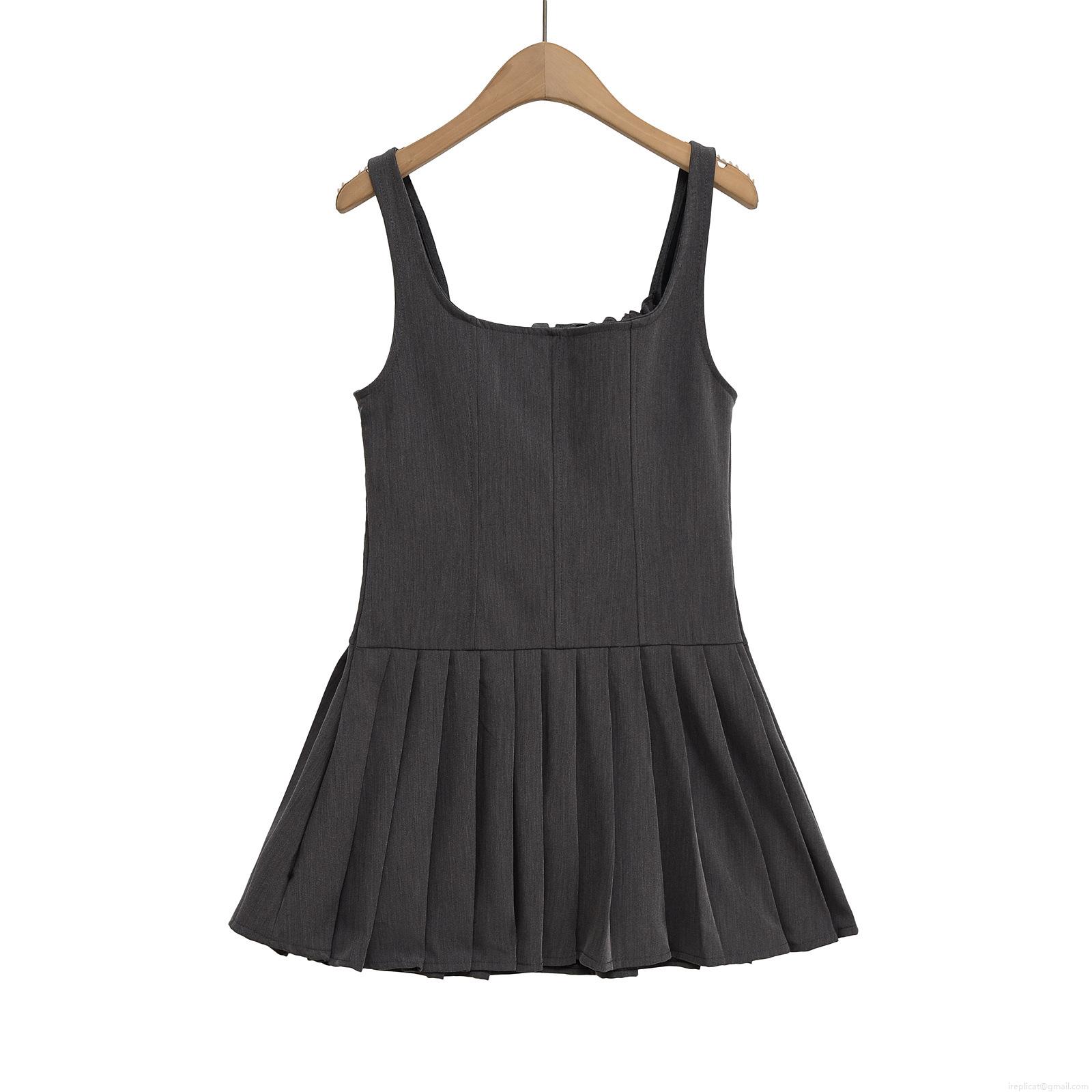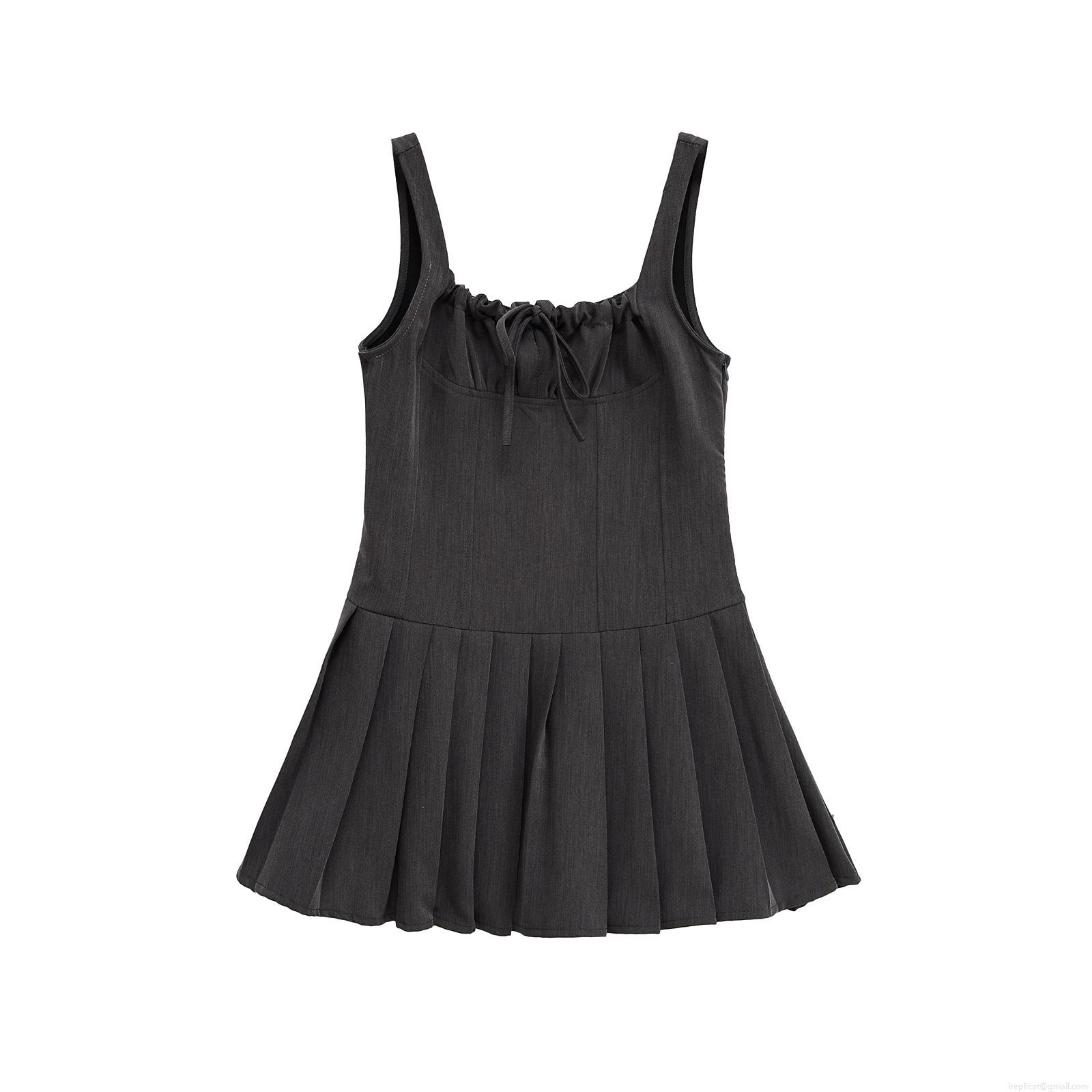 • Women's Summer Dark Grey Suspender Mini Dress Polyester A-Line Pleated Hem Bow Tie Waist Square Neck Cami Dress For Dating Party Streetwear Fashion