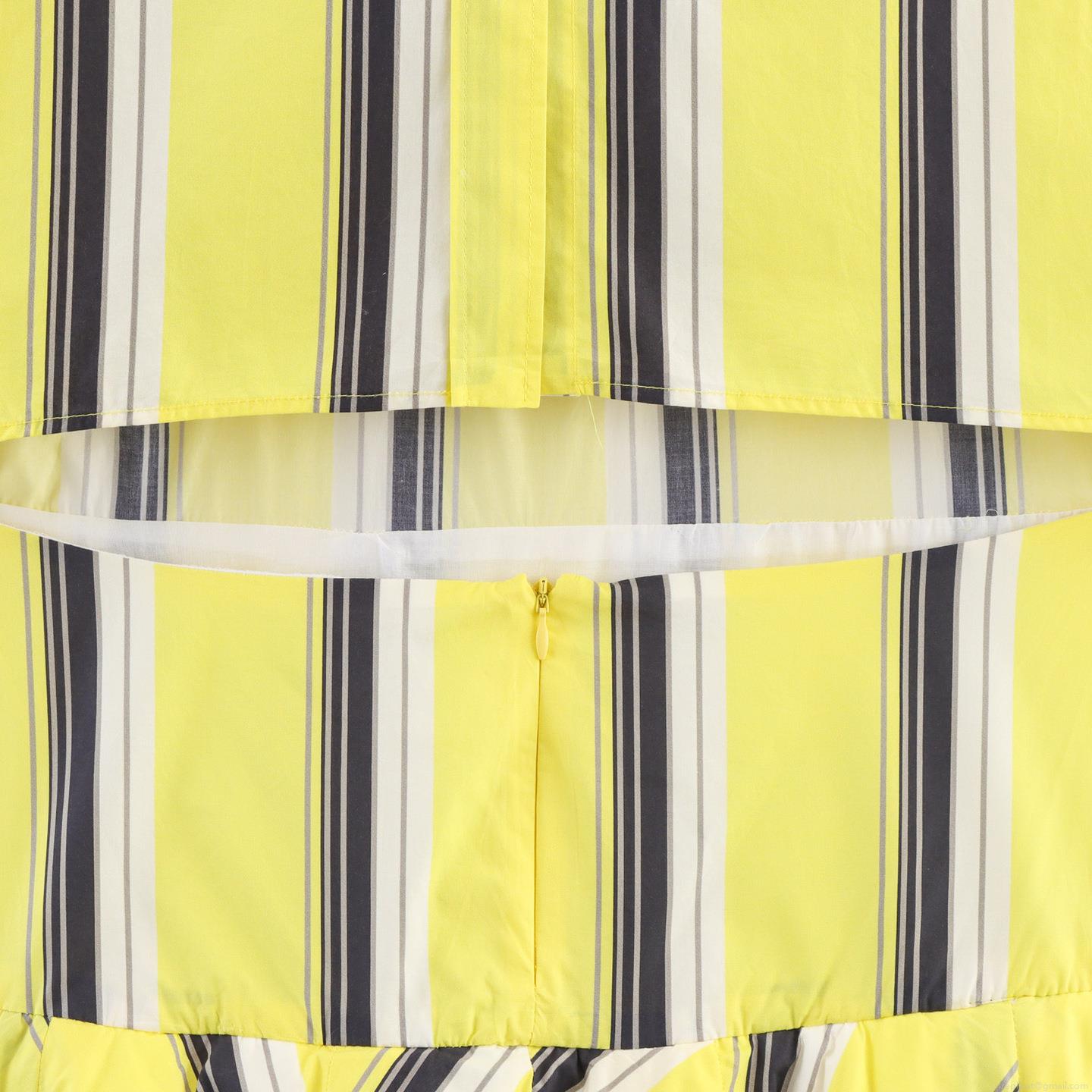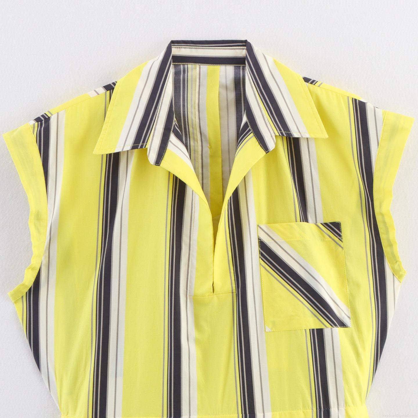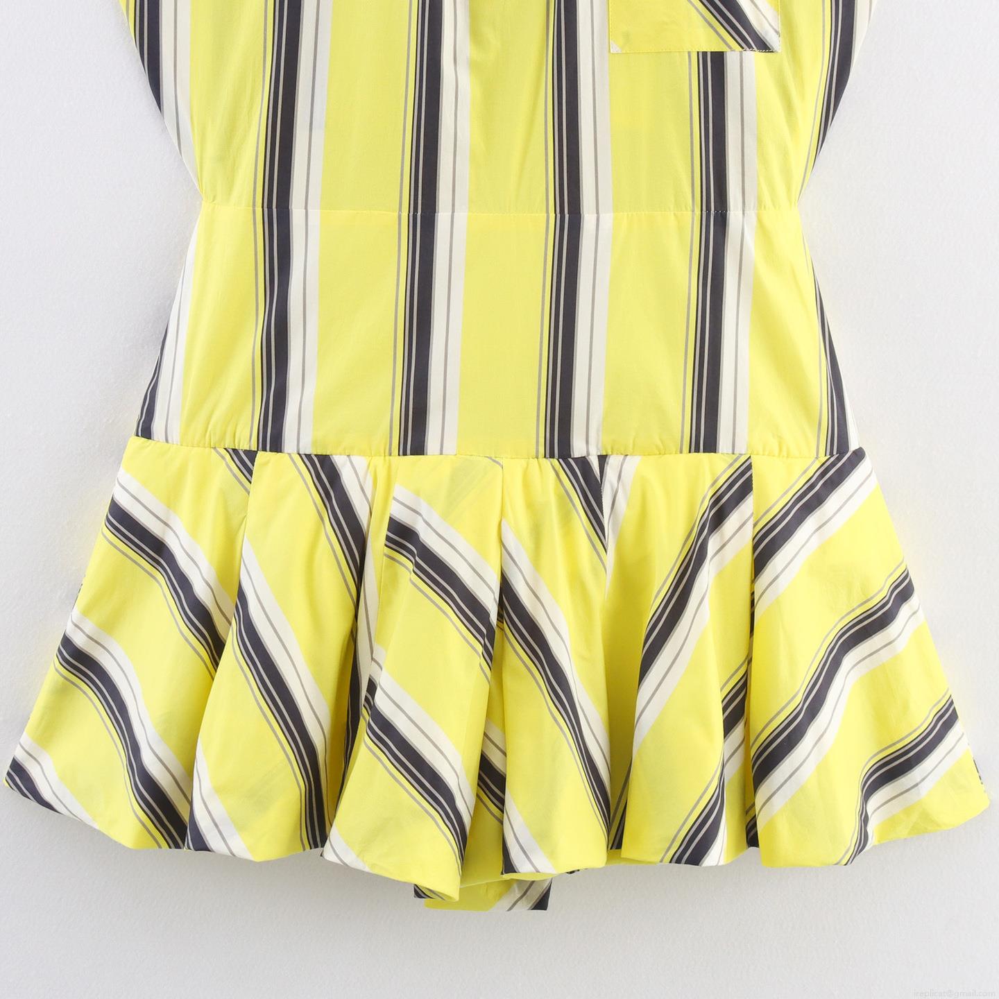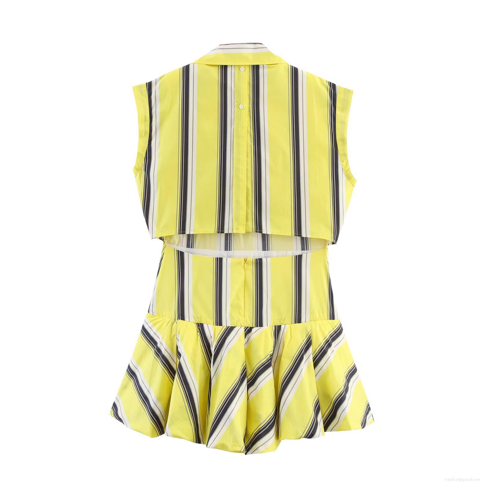 • Women's Summer Fashion Yellow Striped Sleeveless Dress Casual Polyester Spandex Lapel Neck Cutout Back Mini Dress With Chest Pocket A-Line Pleated Hem Holiday Beach Wear