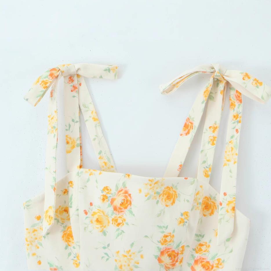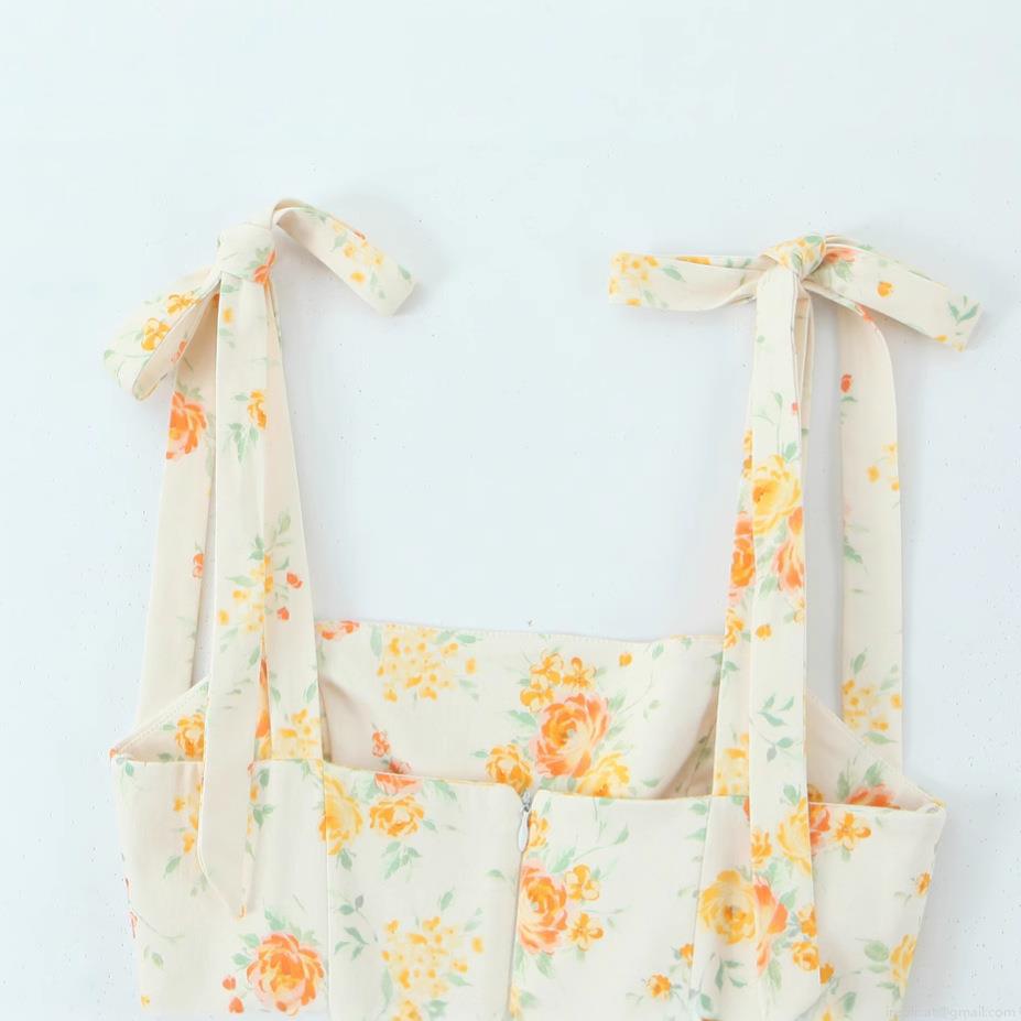 • Women's Summer Floral Print Poplin Mini Dress Bow Tie Shoulder Strap Sleeveless A-Line Back Zipper Camisole Dress for Vacation Party