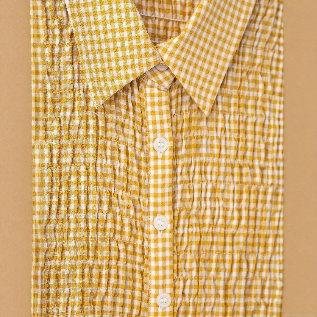 Wischig, Checkered Pattern, Ruffles, Gathering, Lapel, Resin Buttons, Pleats