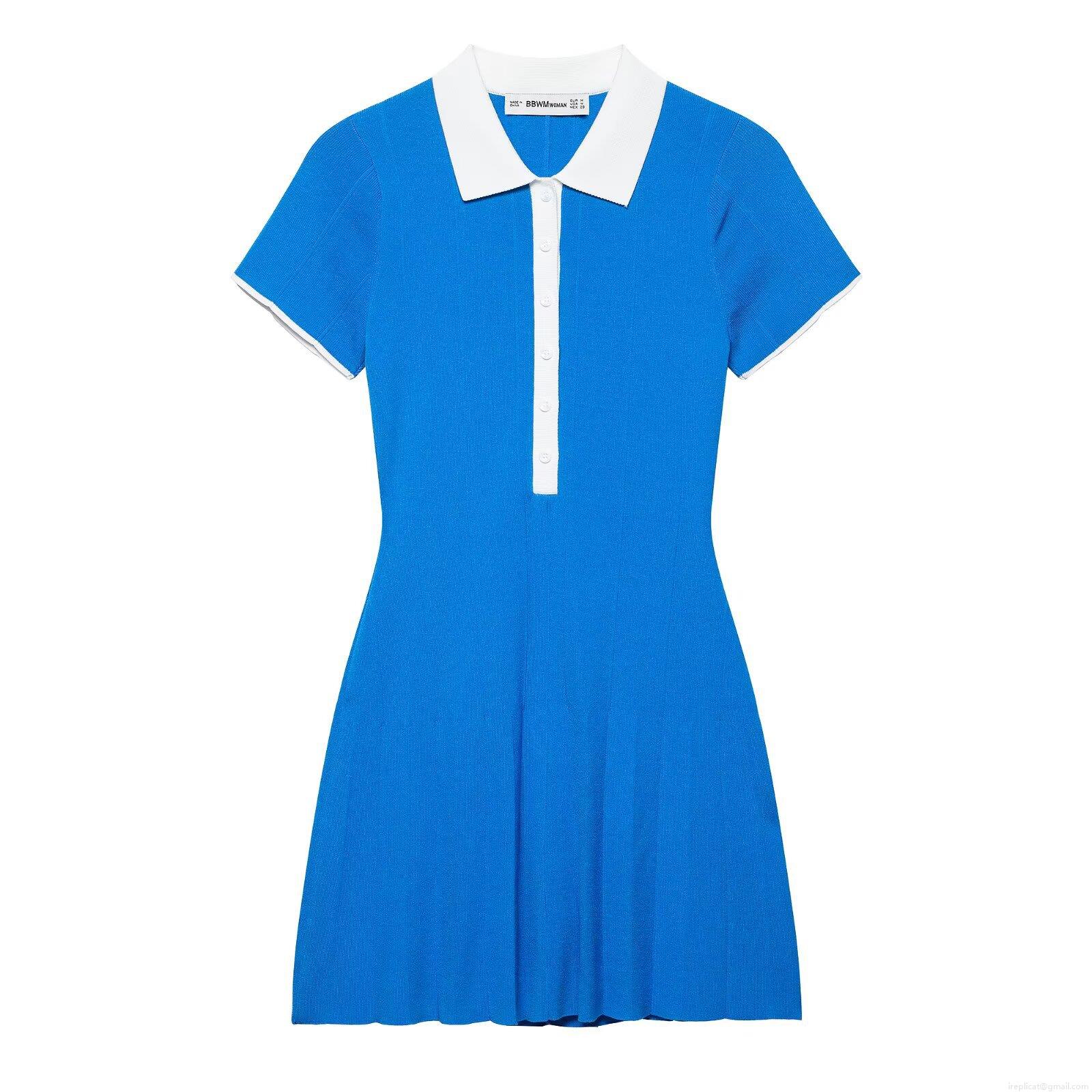 • Women's Summer Knit Polo Mini Dress Contrast Trim Short Sleeve Shirt Dress Streetwear Casual Sporty Bodycon A-Line Outfits