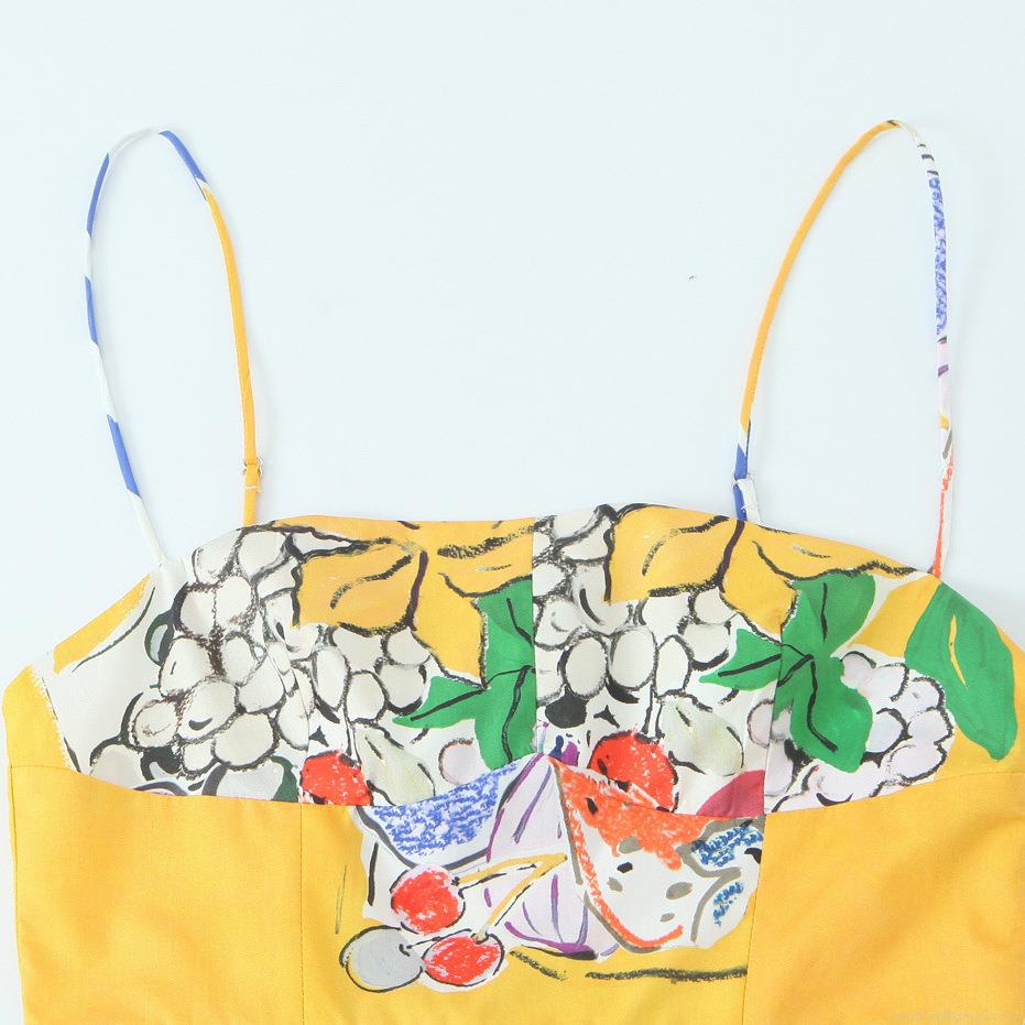 • Women's Summer Resort Fruit Print Camisole Dress Polyester Spandex High Waist Mini A-Line Poplin Dress for Beach Vacation Sleeveless Tropical Sundress