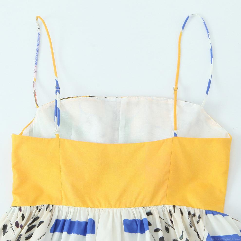 Stripe, Flowers, Fruit Elements, Fruit Print, Thin Shoulder Straps, Waist-cinching And Pleats