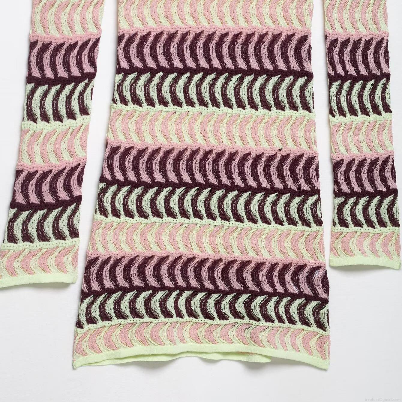 Stripe, Wave, Hollow Out, Color Blocking, Knitted Texture