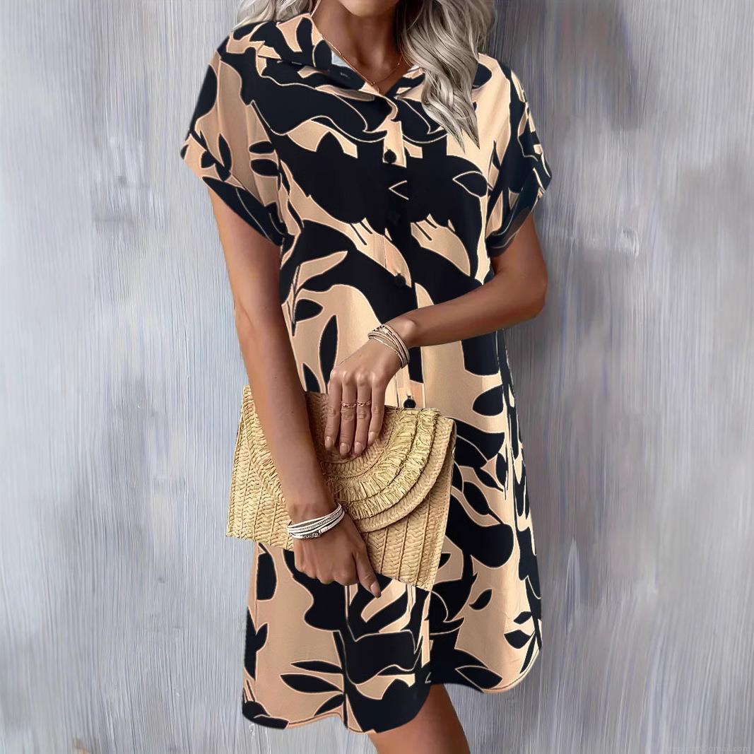 • Women's Summer Short Sleeve Abstract Leaf Print Shirt Dress Casual Button Down Lapel V-Neck A-Line Mini Dress For Office Daily Vacation Plus Size