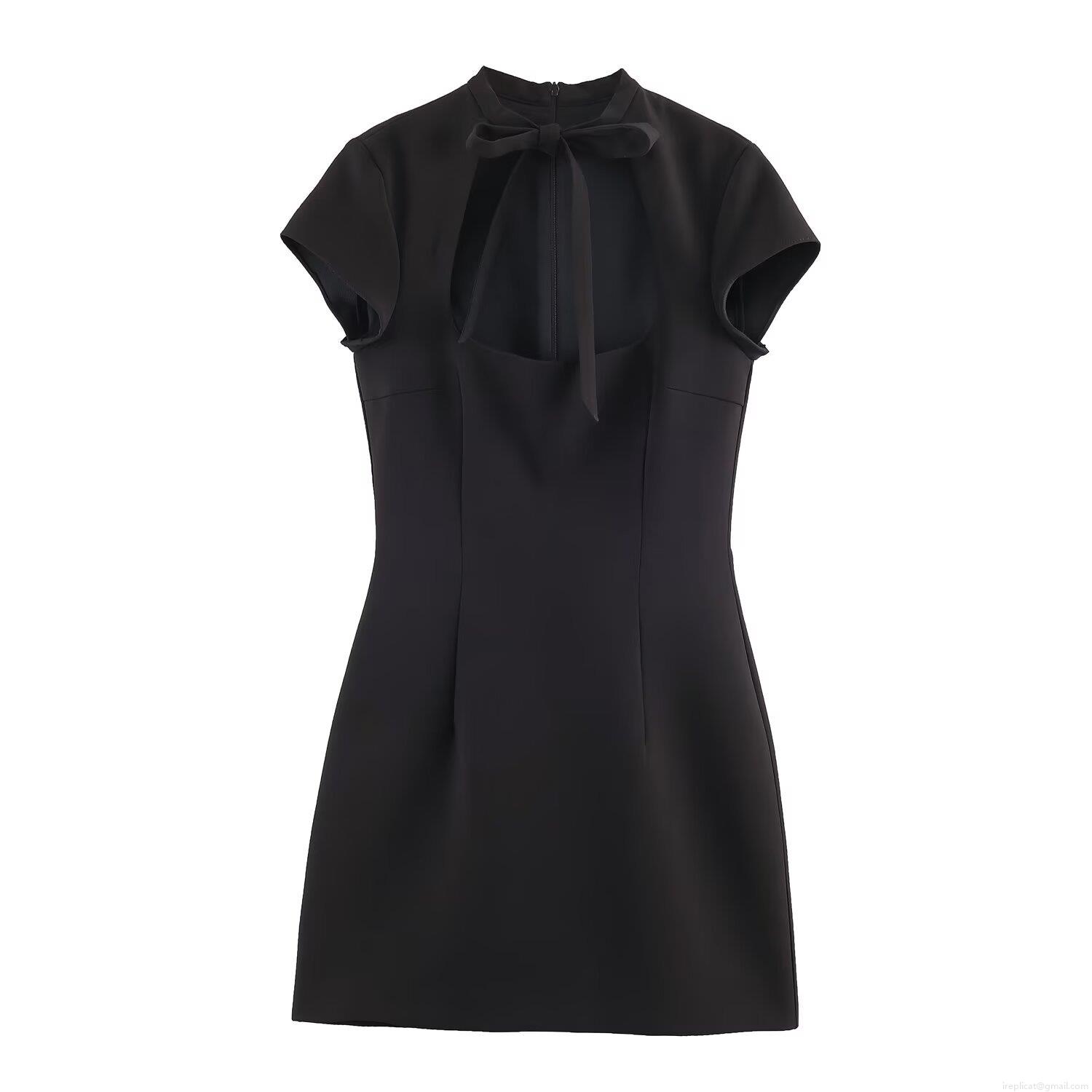 • Women's Summer Short Sleeve Polka Dot Mini Dress Stand Collar Bow Tie Hollow Out Backless Slim Fit Polyester Short Dresses for Party Streetwear