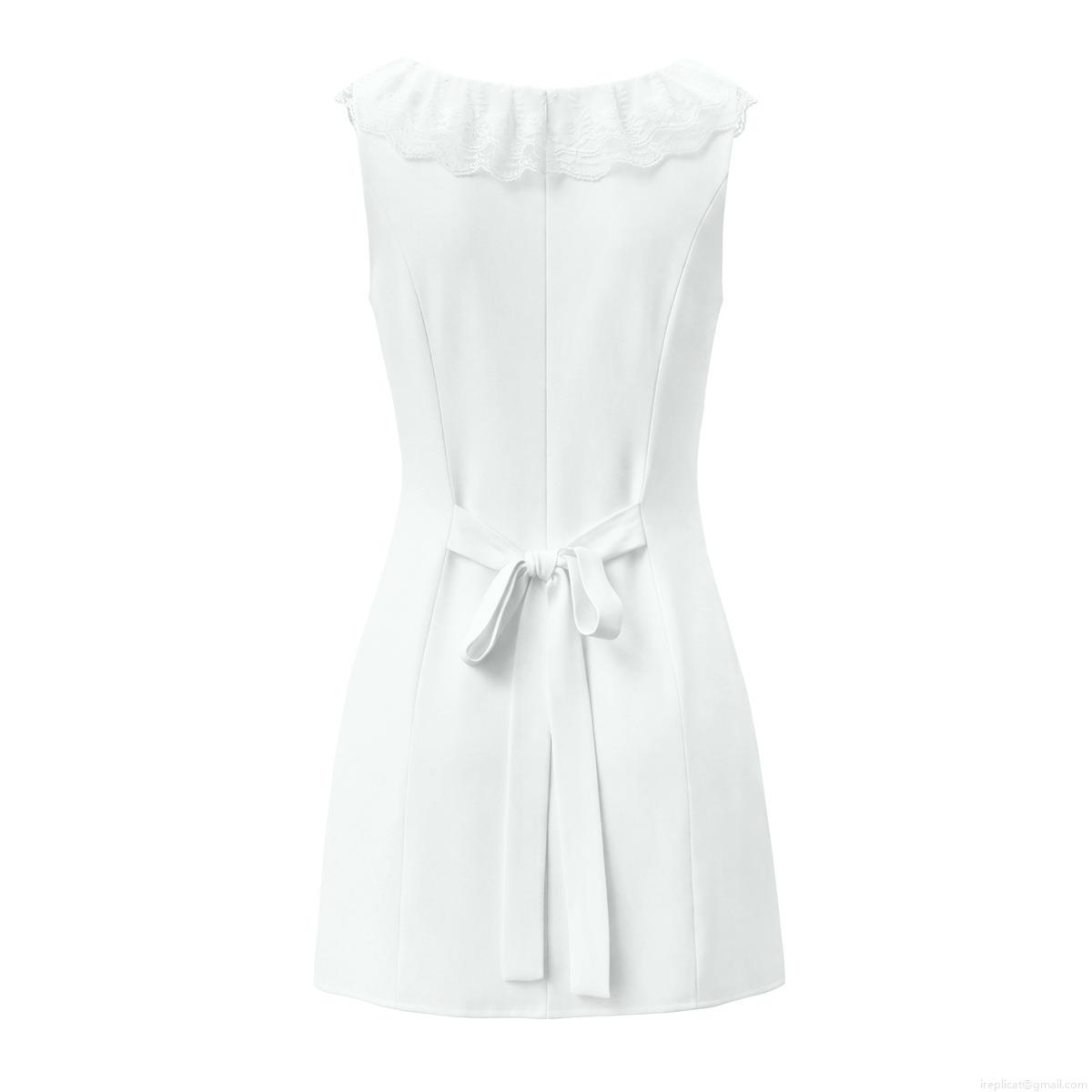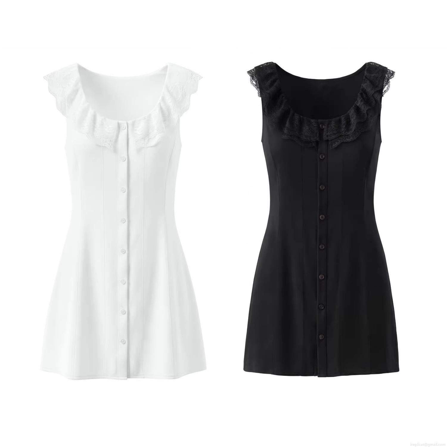 • Women's Summer Sleeveless Mini Dress Fashion Ruffle Lace Square Neck Single-Breasted A-Line Dress With Back Bow Tie For Party Clubwear Solid Color Polyester Vest Dress