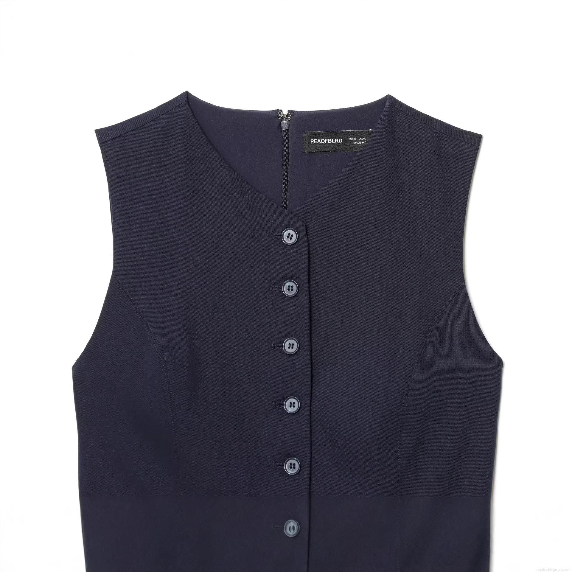 • Women's Summer Sleeveless V-Neck Mini Dress With Belt Solid Color Pleated A-Line Button Front Decor Polyester Casual Office Dress