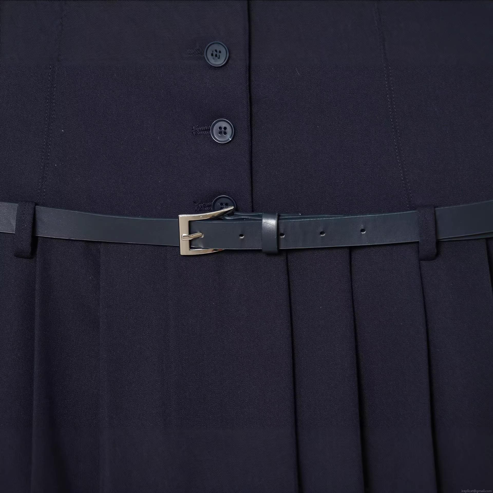 Solid Color, Twill, Belt, Pleats, V-neck, Single-breasted Decoration