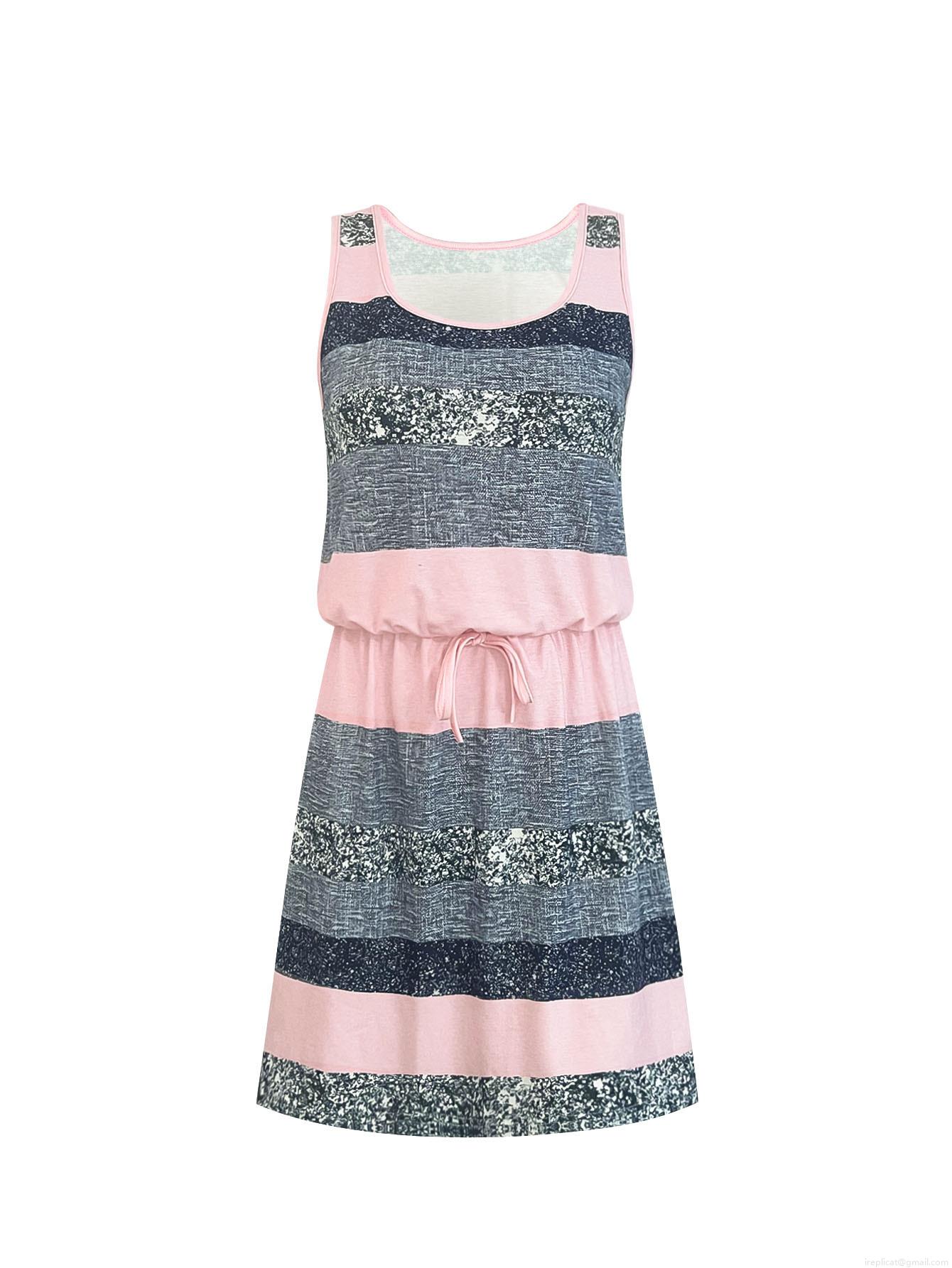 • Women's Summer Striped Sleeveless Mini Dress Polyester Spandex Blend Drawstring Waist Casual Beach Vacation Sundress Bodycon Dress