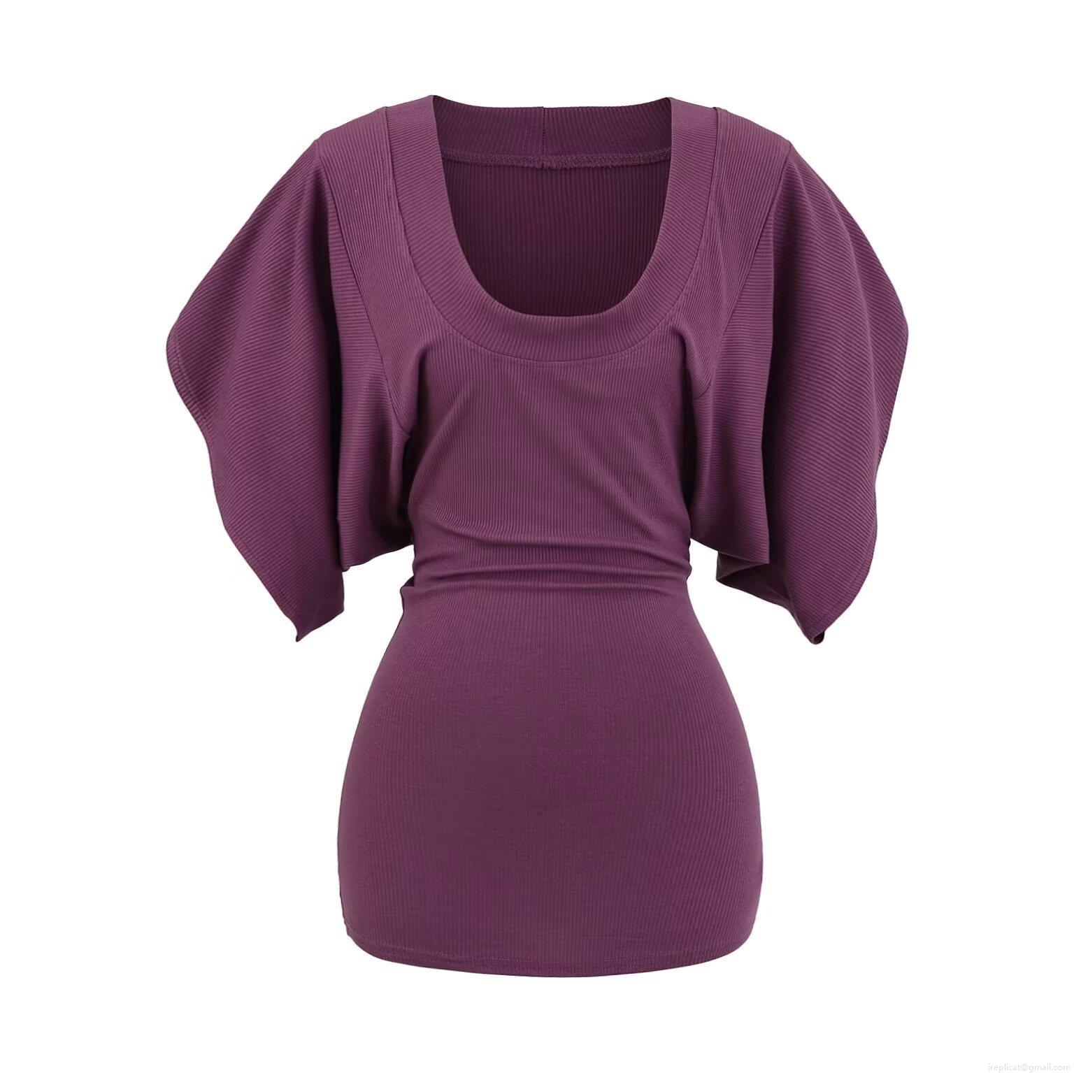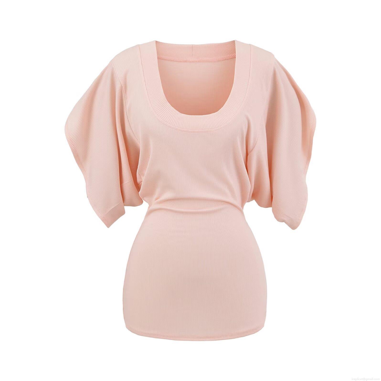 • Women's Summer U-Neck Batwing Sleeve Mini Dress Ribbed Viscose Elastane Knit Slim Fit Solid Color Short Sleeve Party Streetwear Dress