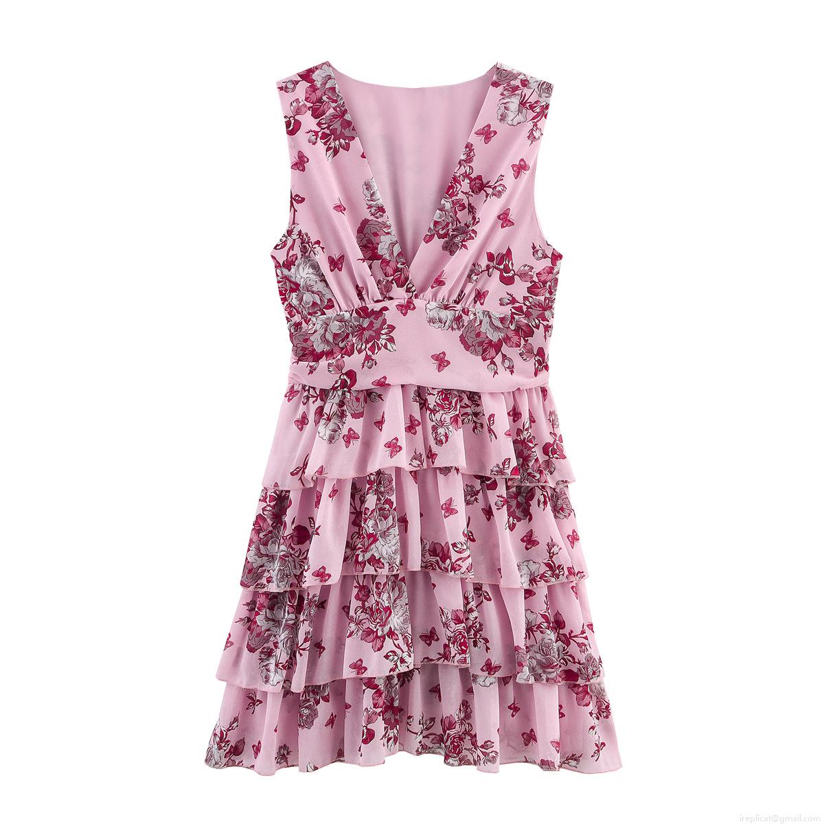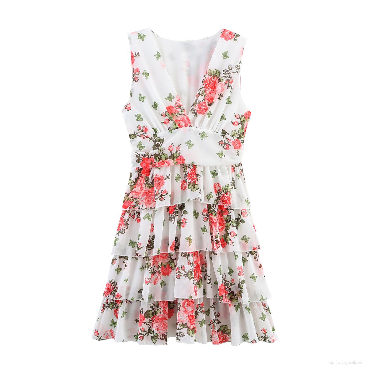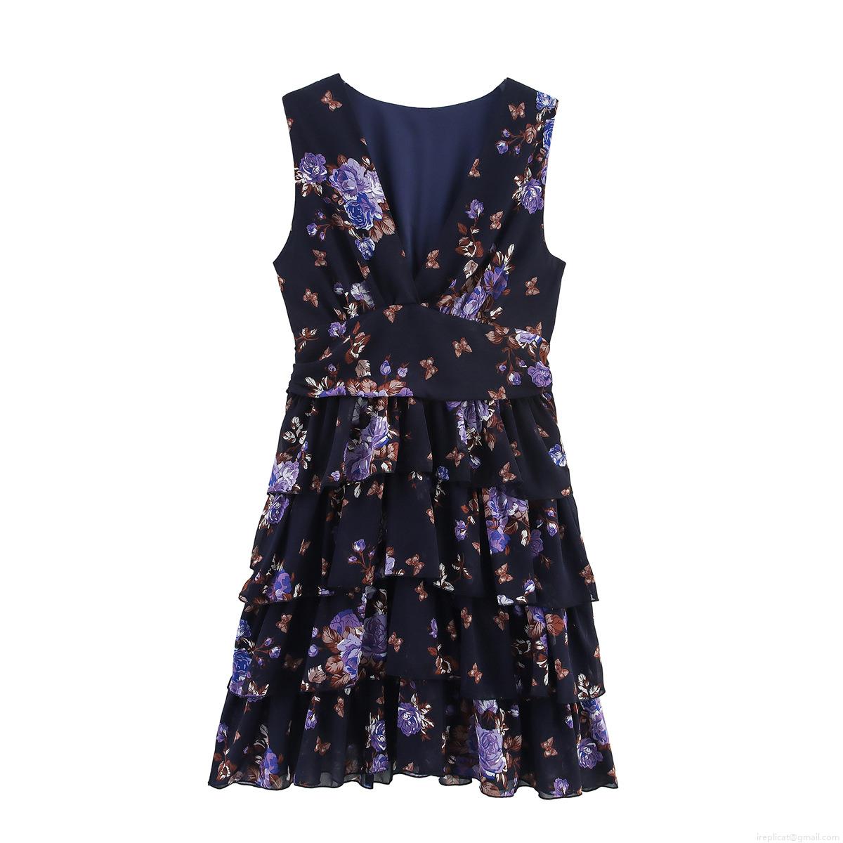 • Women's Summer V Neck Sleeveless Floral Print Tiered Mini Dress Sexy Elegant Chiffon Layered Party Sun Dress For Ladies