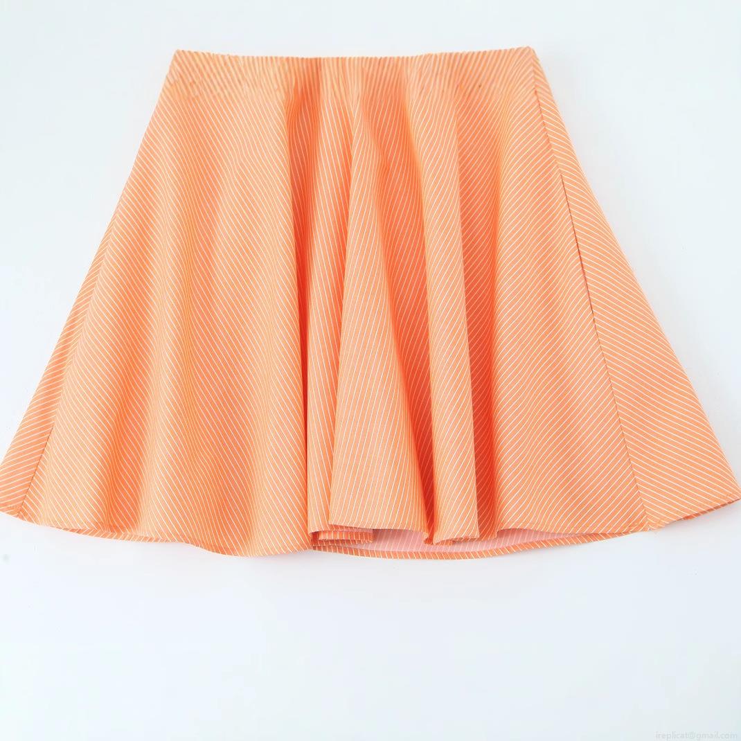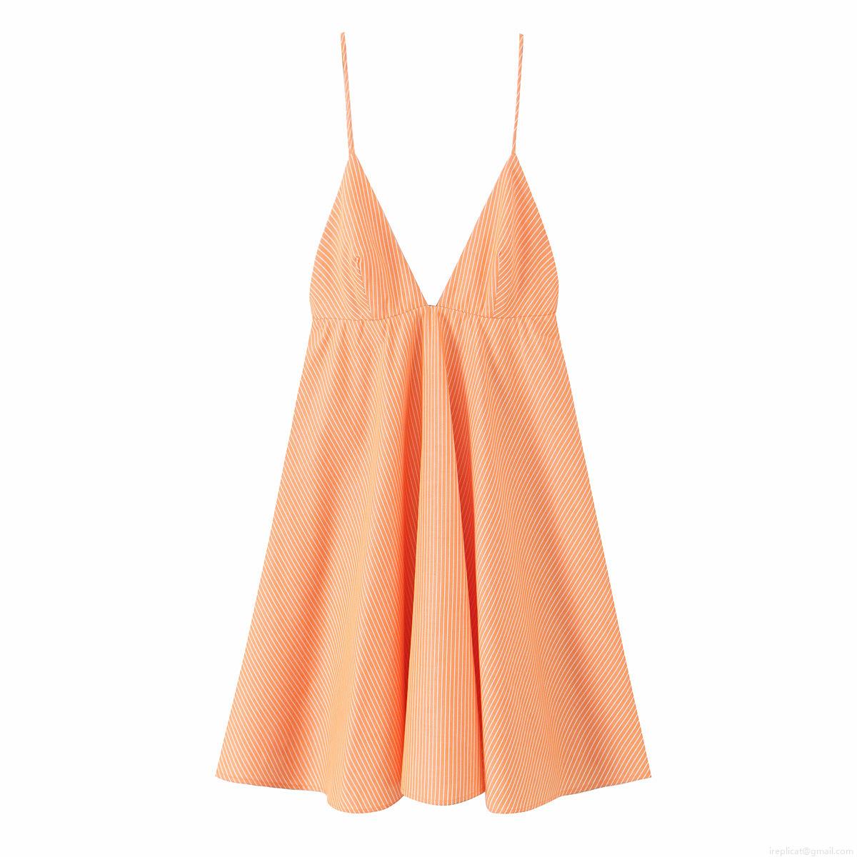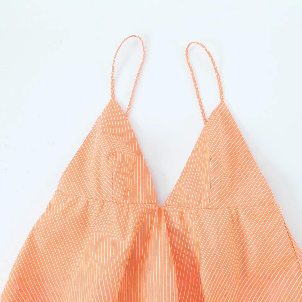 • Women's Summer V-Neck Striped Camisole Mini Dress Elegant Orange and White A-Line Pleated Sun Dress for Vacation Daily Party Casual Wear