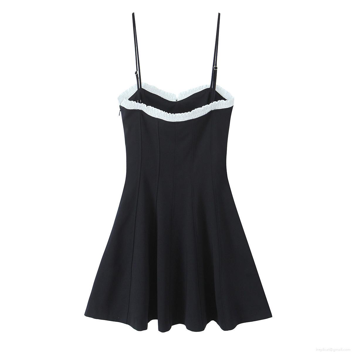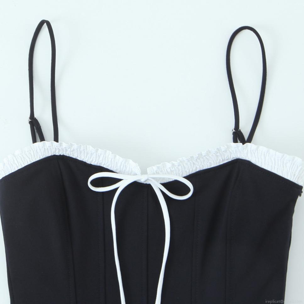 • Women's Sweet Bow Decoration Ruffle Trim Cami Mini Dress Sexy V-Neck Contrast Trim Slim Fit Sleeveless A-Line Summer Party Clubwear Fashion Dress
