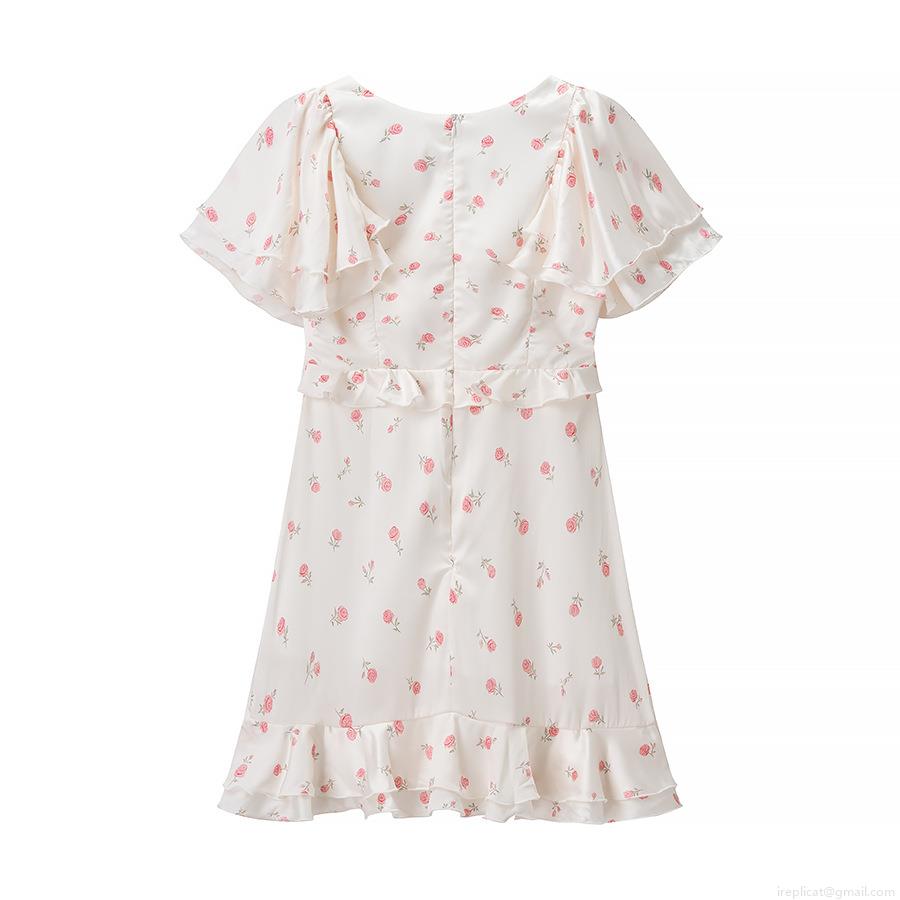 • Women's Sweet Floral Print Mini Dress Elegant V-Neck Ruffle Short Sleeve Polyester Rose Pattern Summer Short Dress Casual Fashion Sundress