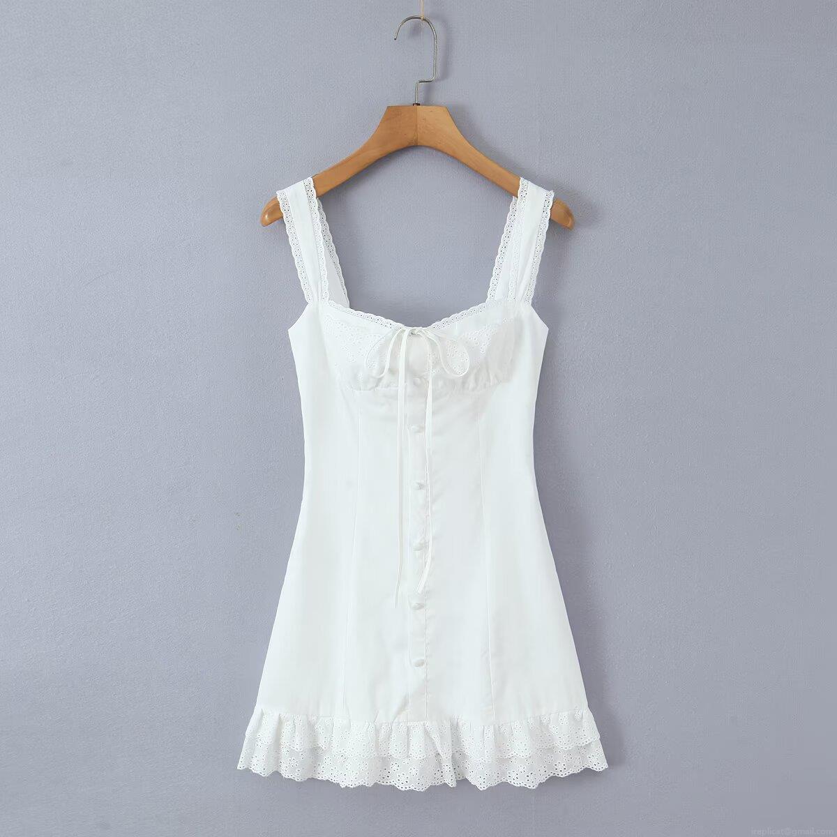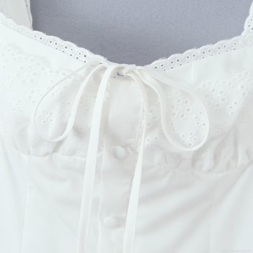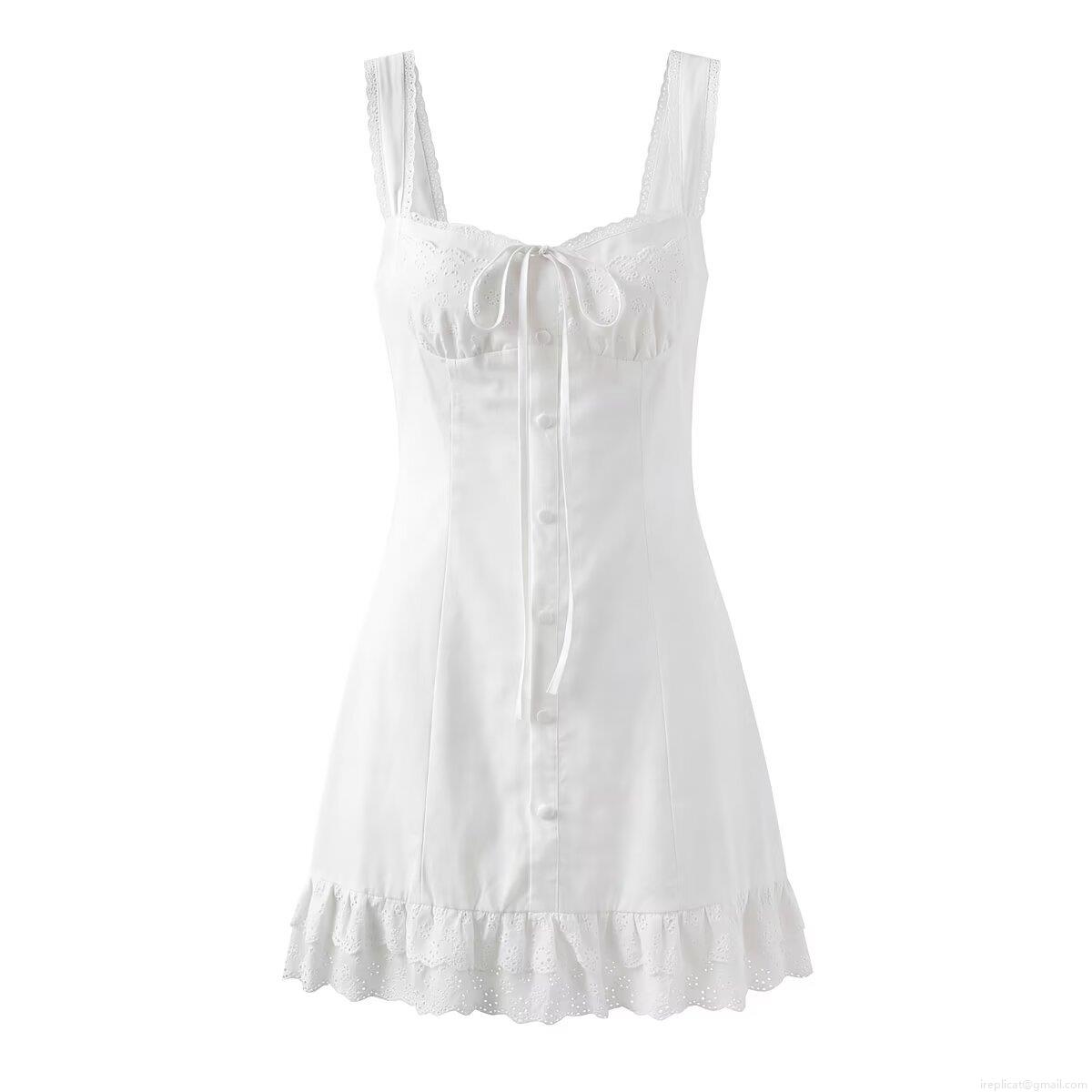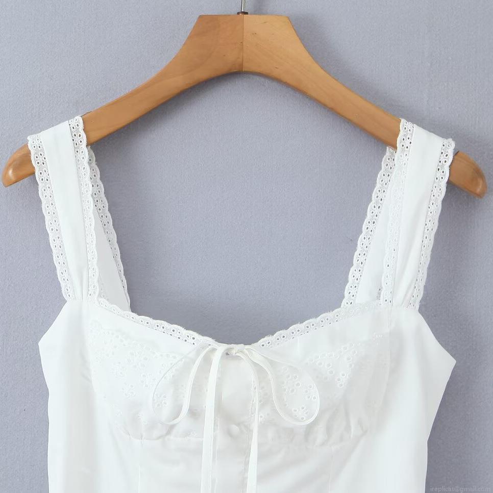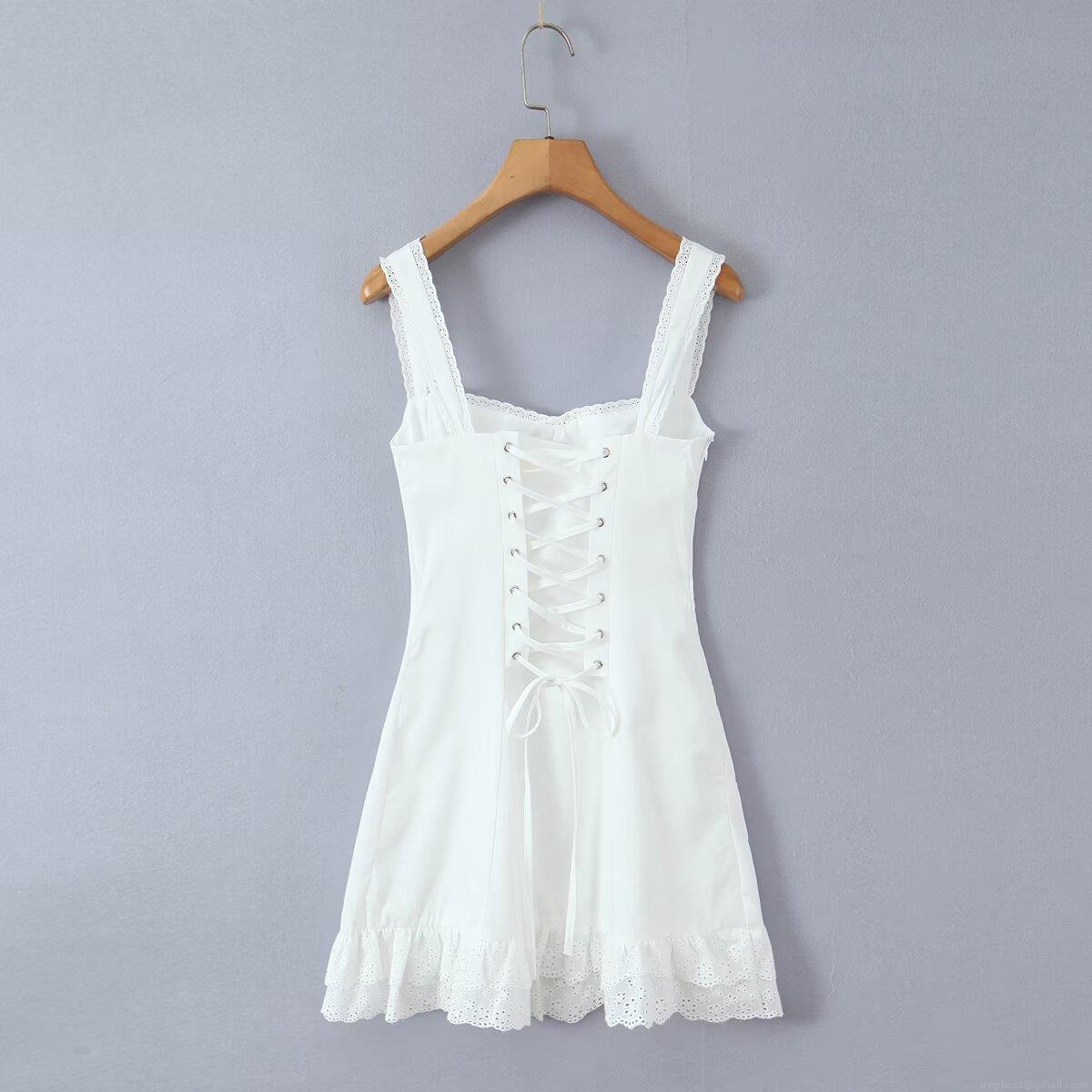 • Women's Sweet Lace Trim Camisole Mini Dress Square Neck Openwork Embroidery A-Line Party Dress Backless Lace-up Fairycore Short Dress