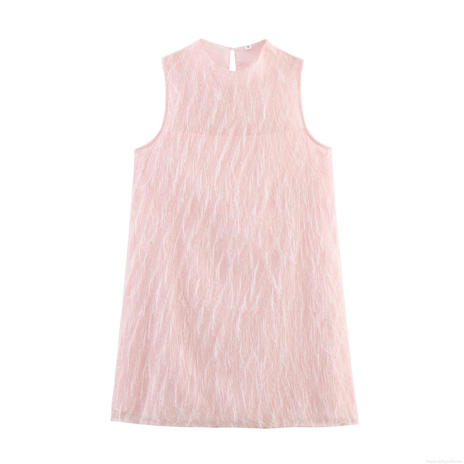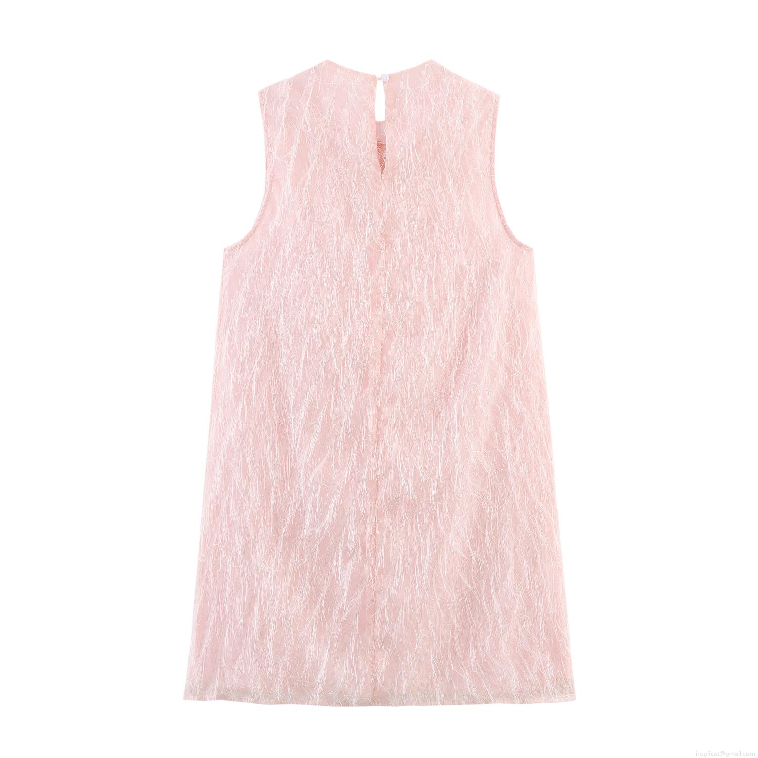 • Women's Sweet Pink Sleeveless Mini Dress with Feather Fringe Texture Round Neck A-Line Short Party Dress for Girls Women Elegant Celebration Outfit