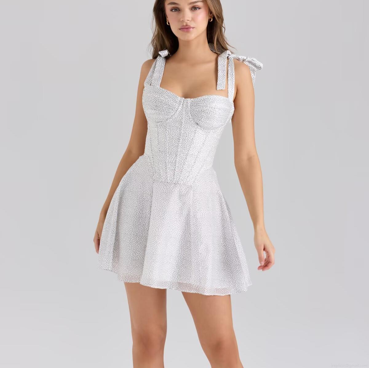 Women's Sweet Polka Dot Bustier Mini Dress Bow Tie Strap Backless A-Line Sundress For Summer Vacation Party Vintage Slim Fit Short Dress