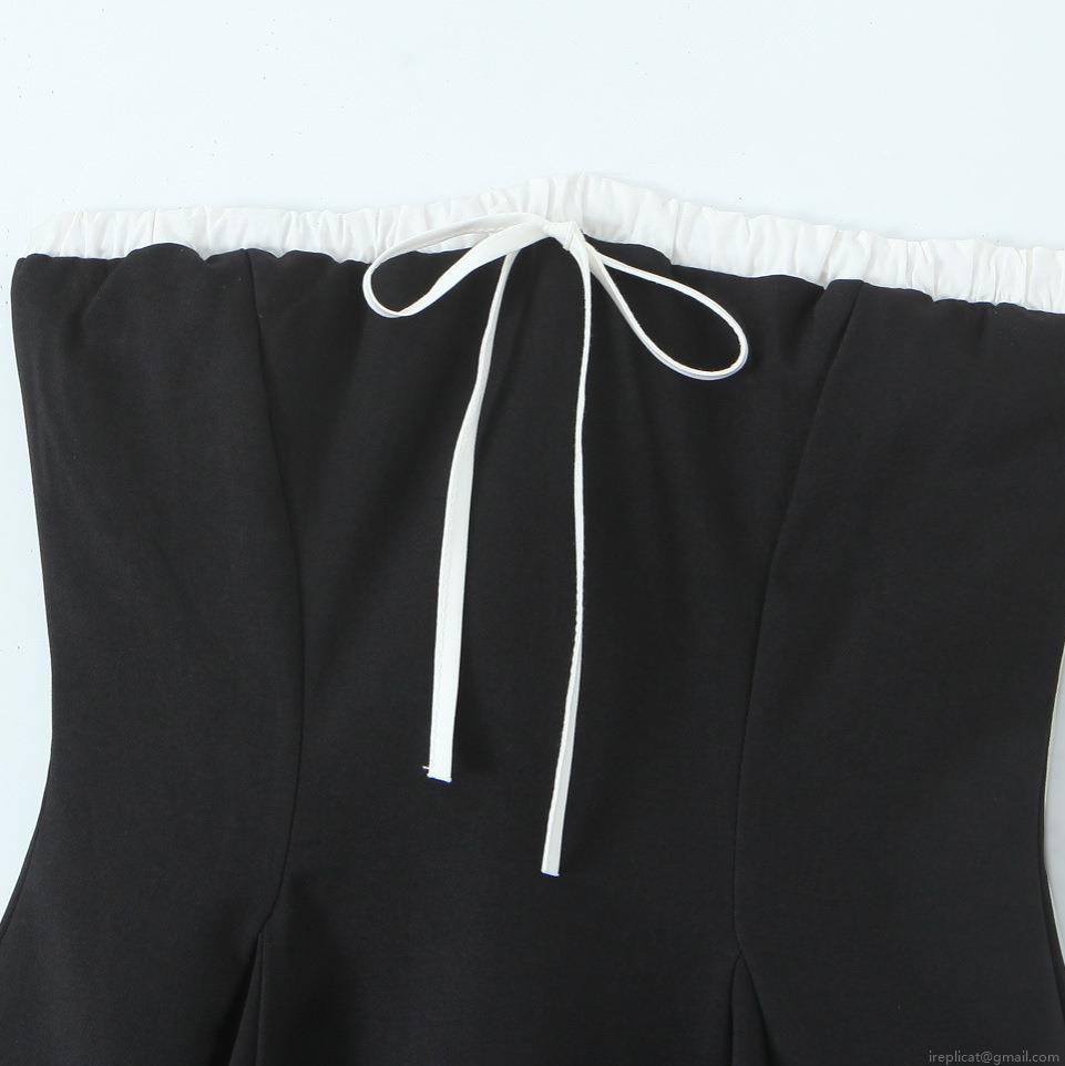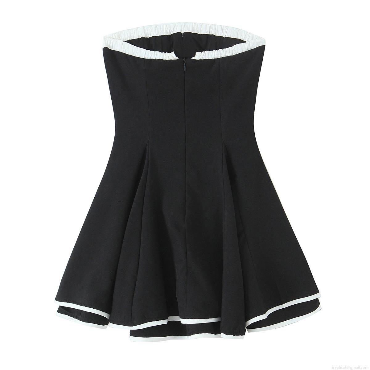 • Women's Sweet Retro Contrast Color Strapless Mini Dress Polyester Bow Ruffle Trim Sleeveless A-Line Party Dress For Summer