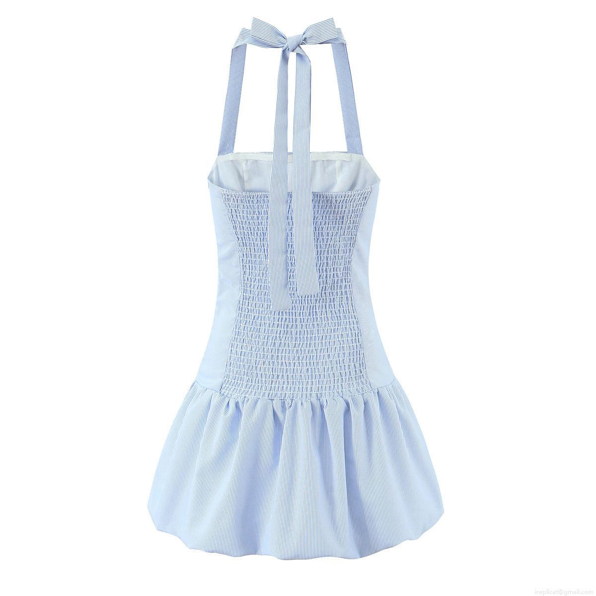 • Women's Sweet Striped Halter Mini Dress Sexy Backless Bubble Hem Short Dress Smocked Waist Sleeveless Party Sundress For Summer Vacations