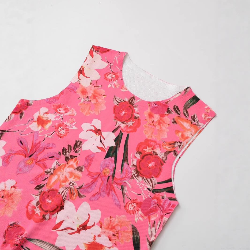 • Women's Tropical Floral Print Sleeveless Mini Dress Round Neck Knit A-Line Polyester Sundress For Summer Vacation Party Elegant Style