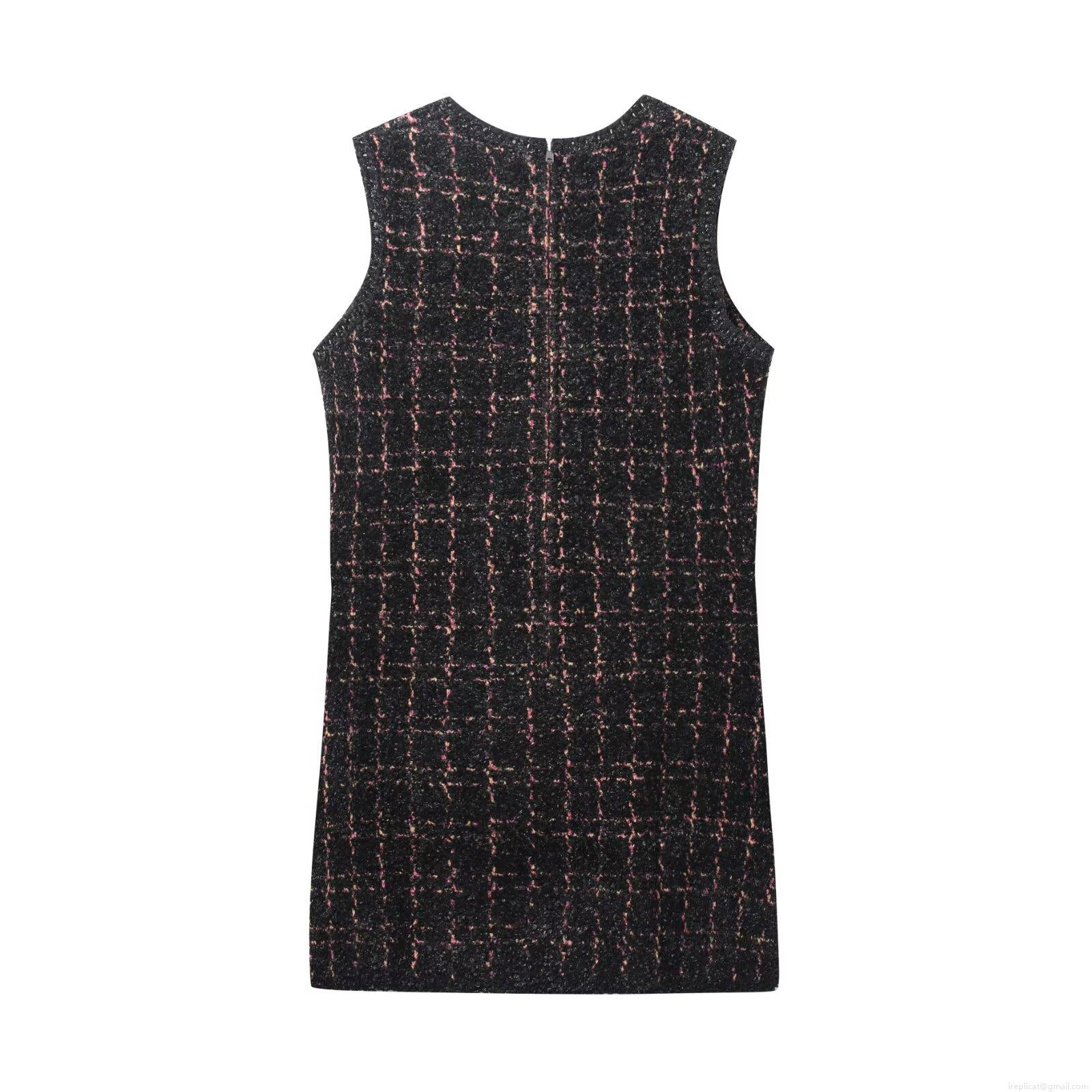 • Women's Tweed Mini Dress Sleeveless Round Neck Plaid Textured Elegant Bodycon Short Dress For Office Party Dating Lady Fashion Dress