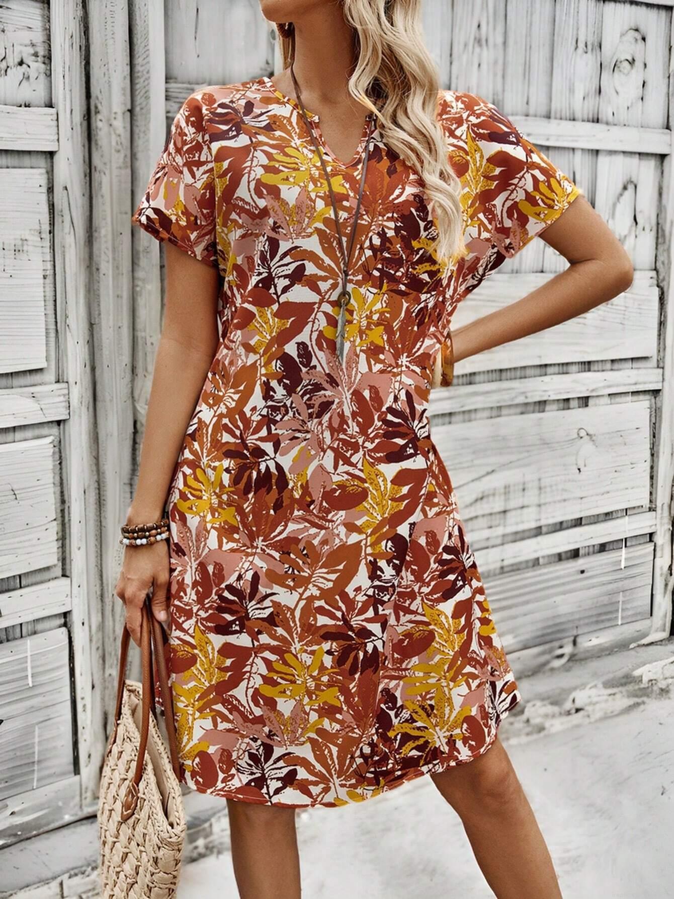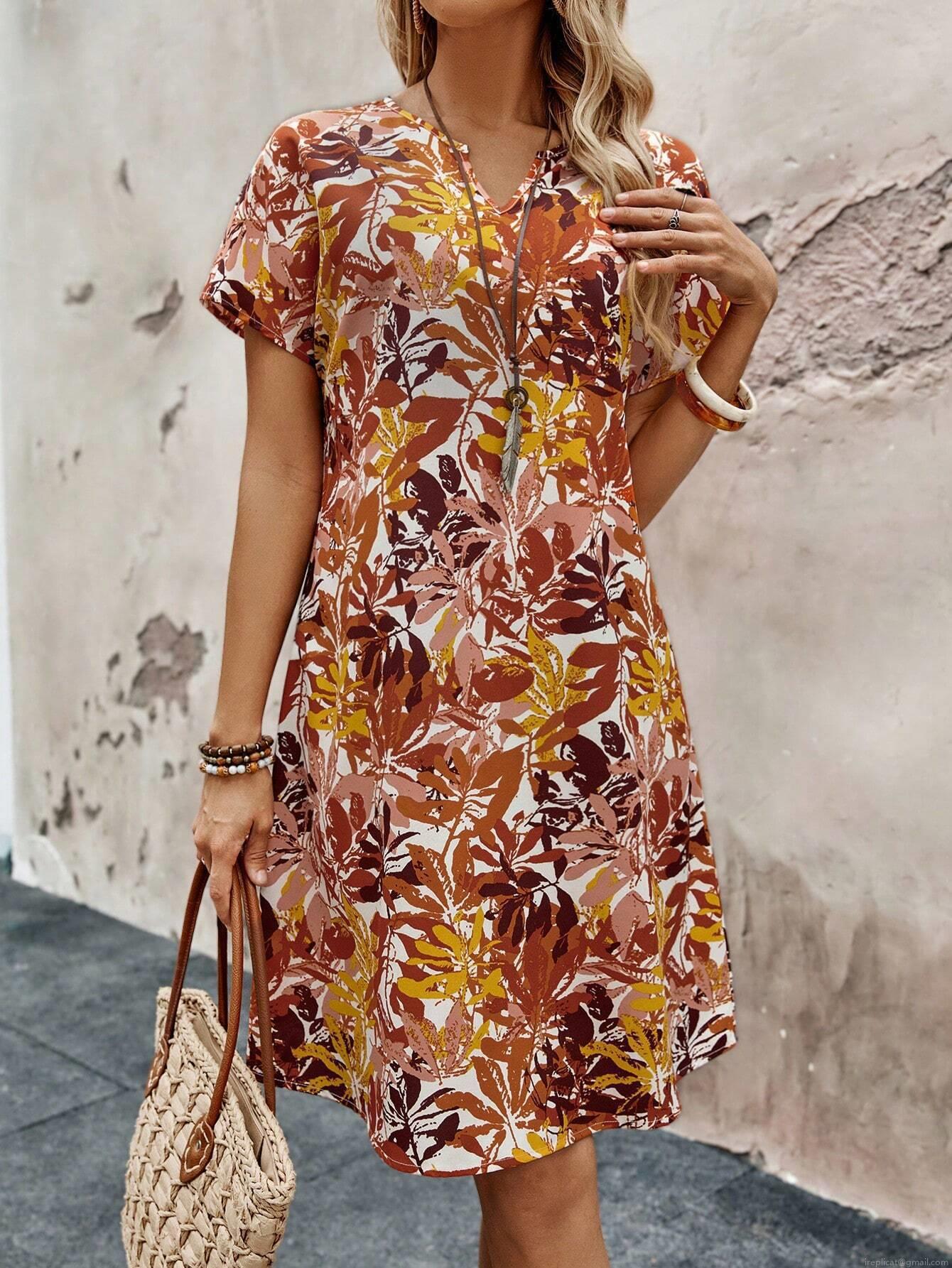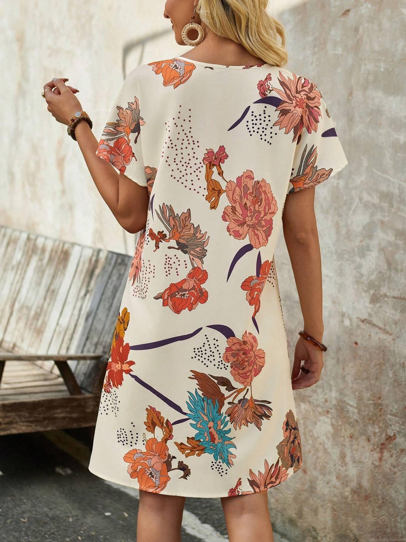 • Women's V Neck Floral Print Short Sleeve A-Line Dress Bohemian Summer Casual Mini Dress Made of Polyester and Spandex for Vacation Beach Party Ladies Clothing