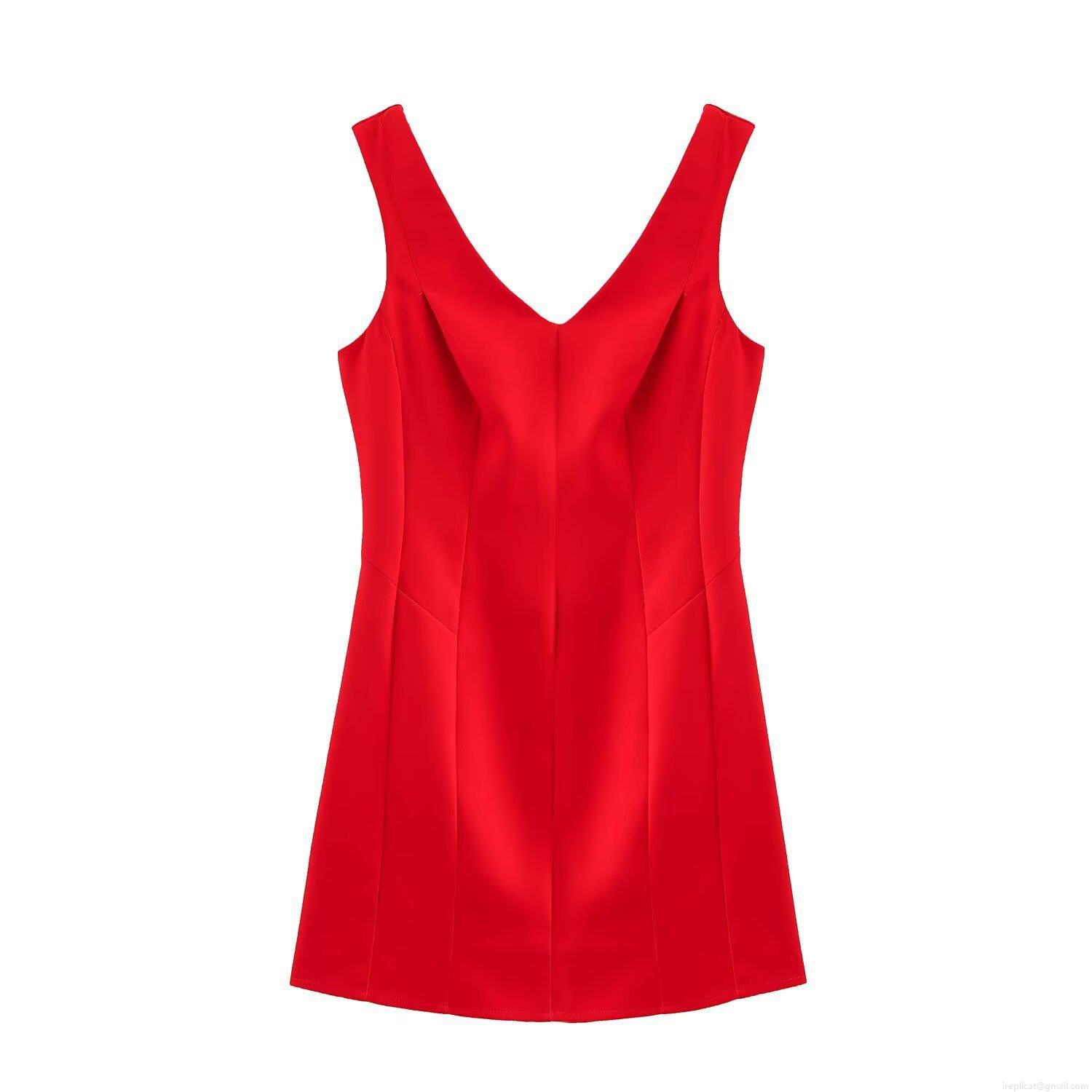 • Women's Valentine's Day Red V-Neck Sleeveless Mini Dress Elegant Pleated Balloon Hem Polyester Short Tank Dress For Party Date Night