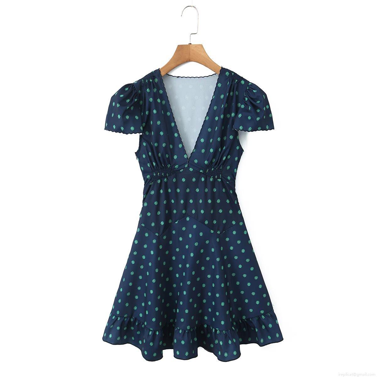 Floral Pattern, Daisy, Ruffles, V-neck, Lace, Wavy Edge, Bundling Process