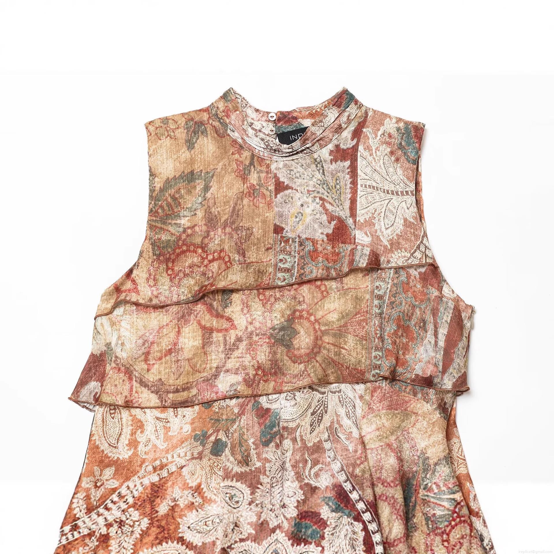• Women's Vintage Paisley Print Sleeveless Stand Collar Tiered Mini Dress Elegant Bohemian Ruffle Cake Skirt Party Holiday Summer Sundress