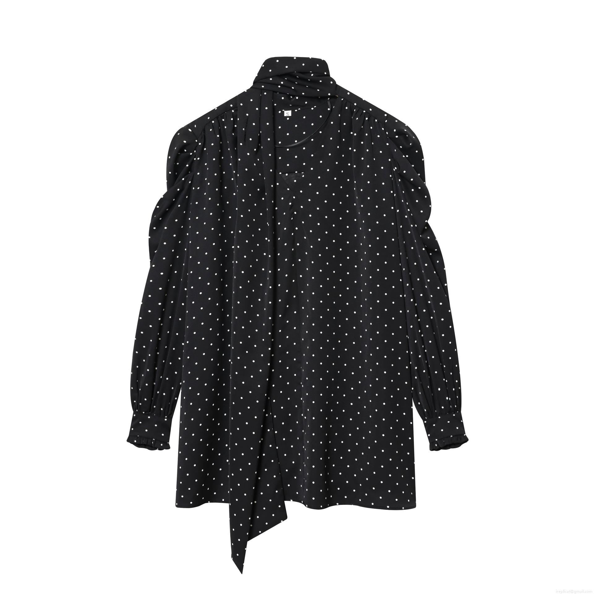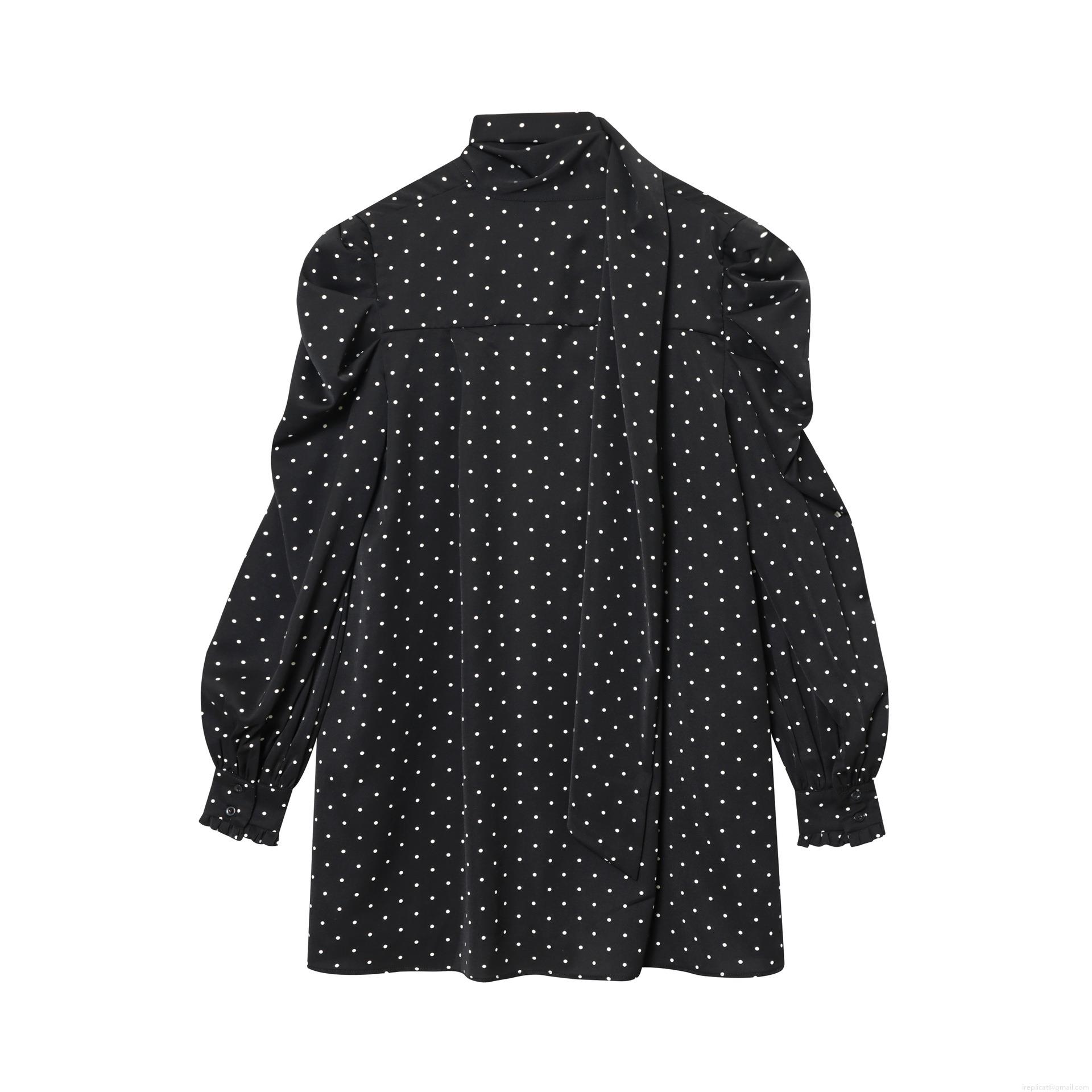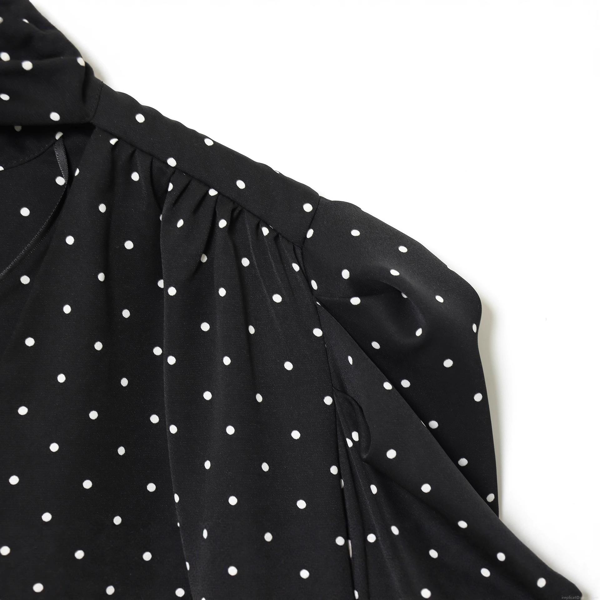 • Women's Vintage Polka Dot Scarf Neck Dress Elegant Long Sleeve Chiffon Mini Dress With Ruffle Cuffs For Party Office Ladies Fashion