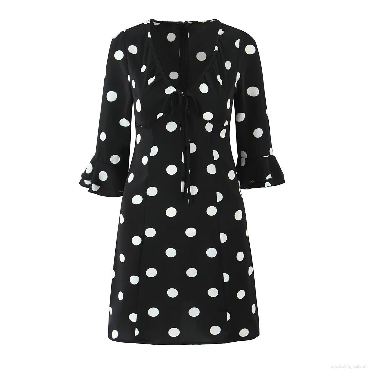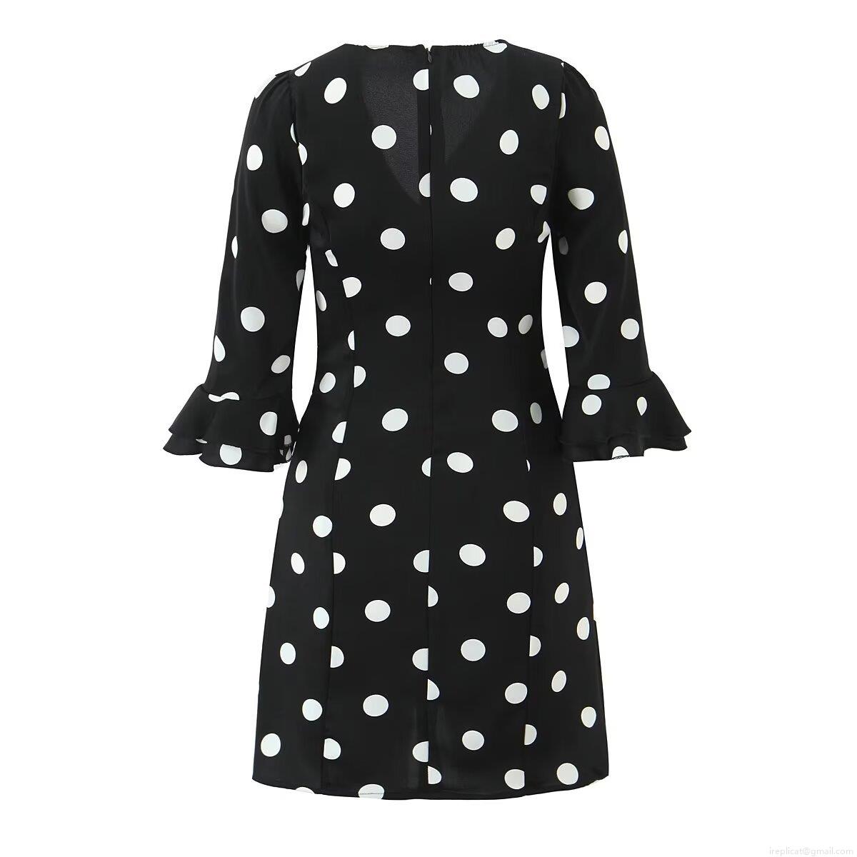 • Women's Vintage Polka Dot V-Neck Dress Elegant Tie-Up Bell Sleeve A-Line Mini Dress Polyester Spandex Retro Casual Party Skirt