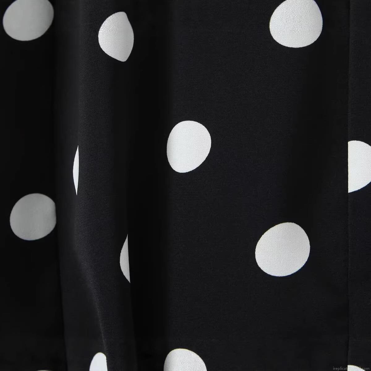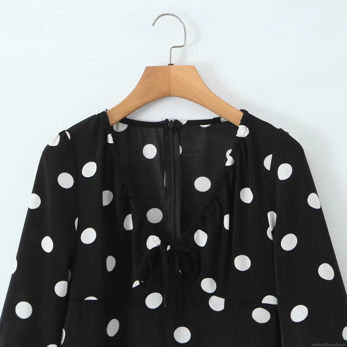 Polka Dots, Ruffles, V-neck, Lace, Bell Sleeves