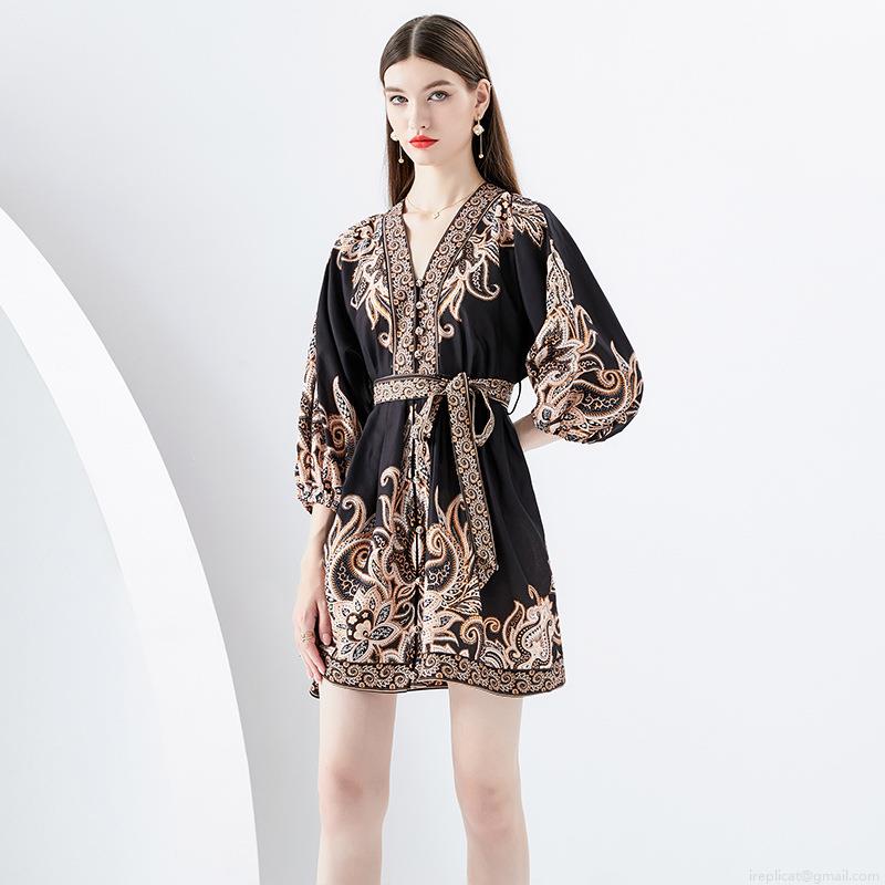• Women's V-Neck Lantern Sleeve Paisley Print Mini Dress Vintage Elegant Chiffon A-Line Short Dress With Waist Tie For Vacation Party Dating