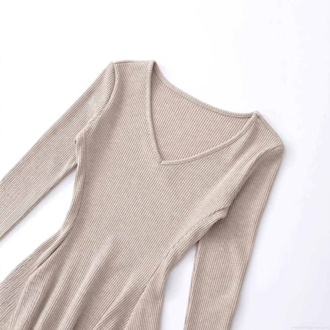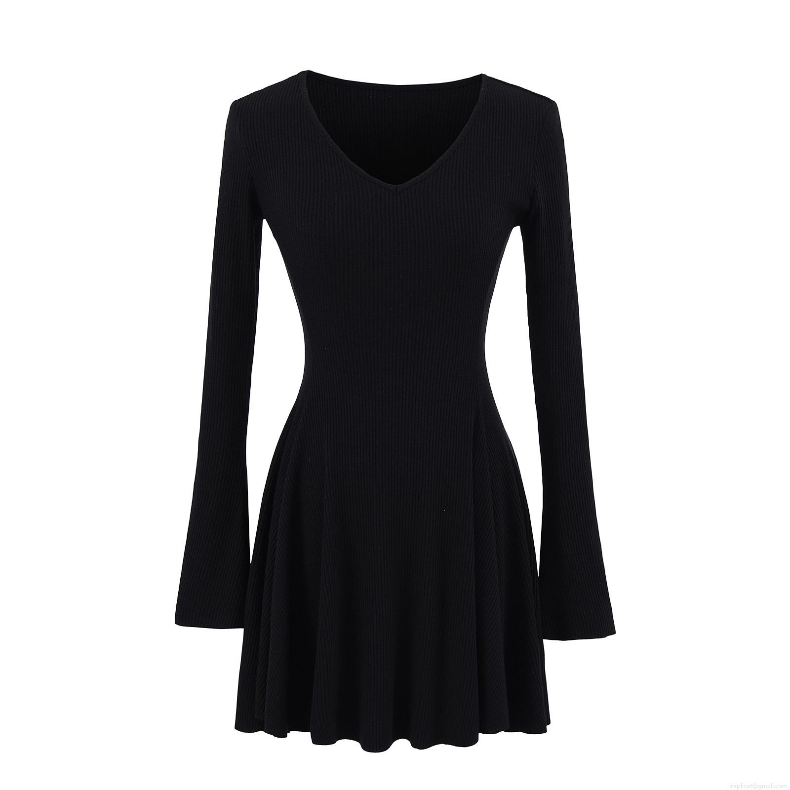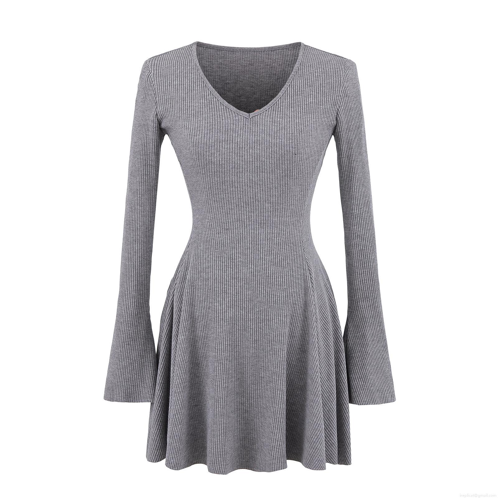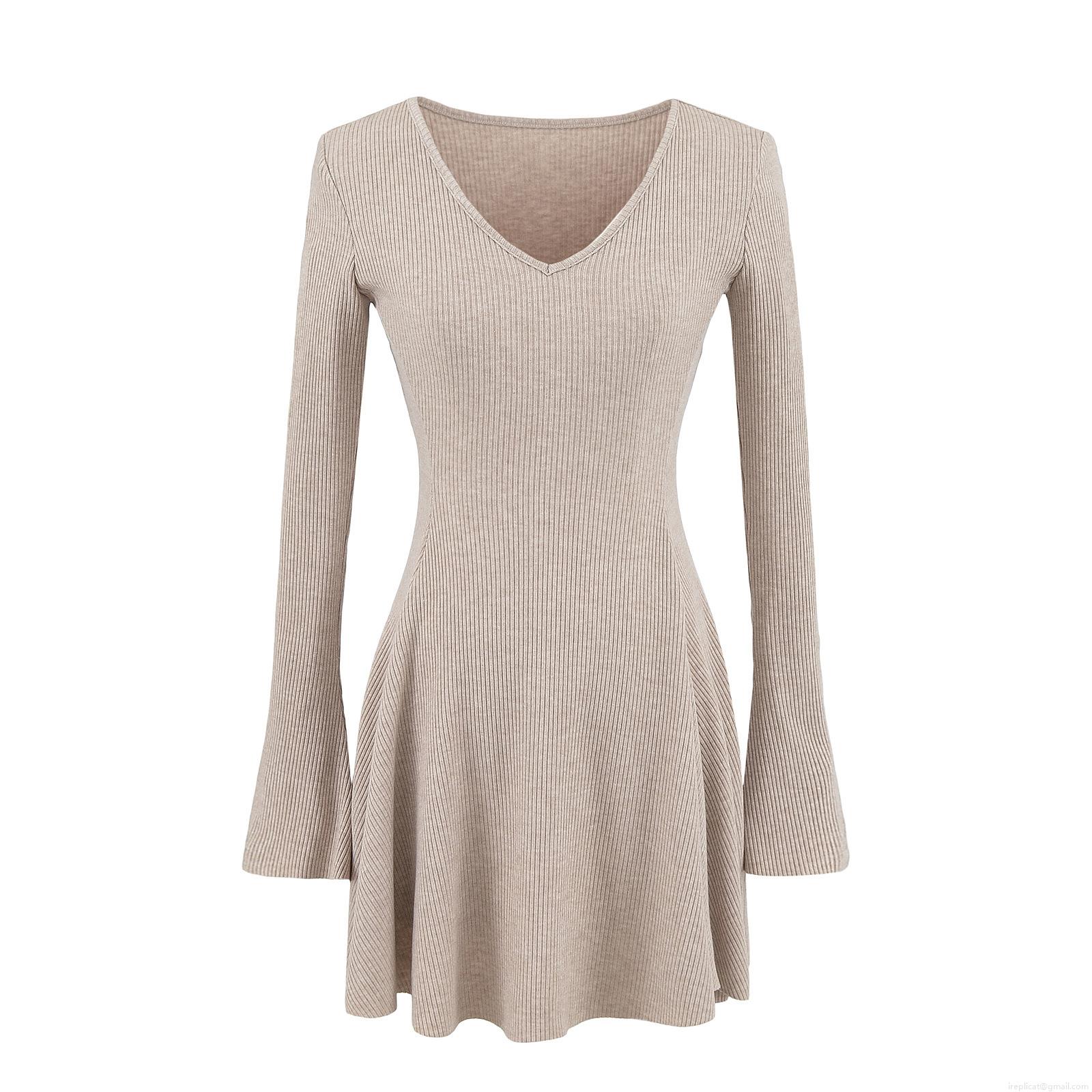 • Women's V-Neck Long Sleeve Knitted Mini Dress Elegant Slim Fit Ribbed Flare Sleeve A-Line Party Dress For Ladies Rayon Polyester Blend