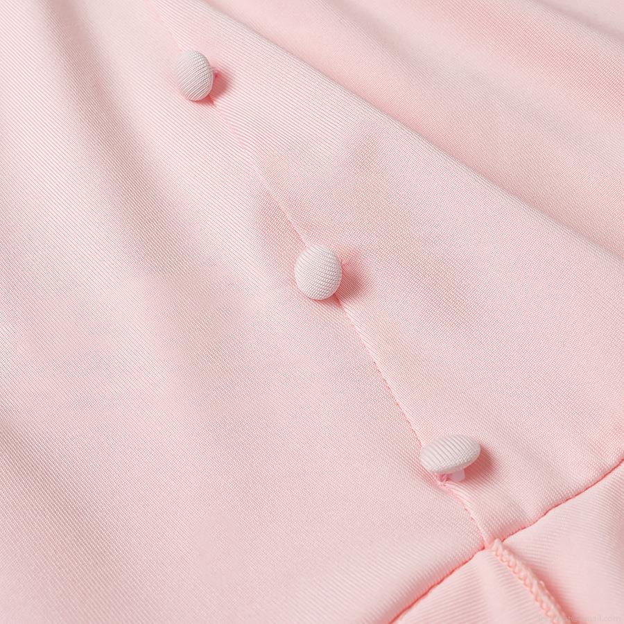 • Women's V-Neck Long Sleeve Tiered Mini Dress With Ruffle Hem Knit Polyester Solid Pink Button Detail Slim Fit Fashionable Streetwear For Daily Party Clubwear
