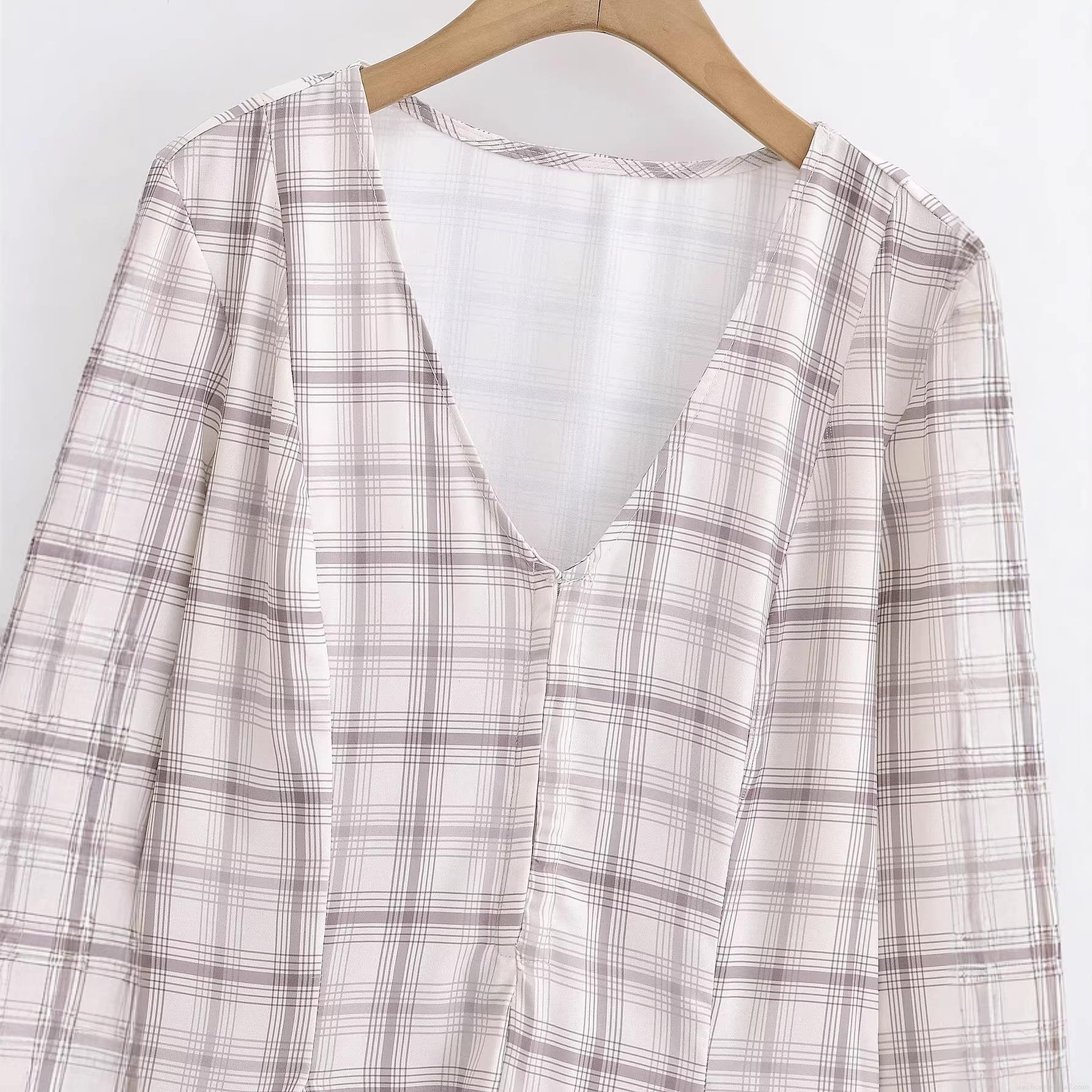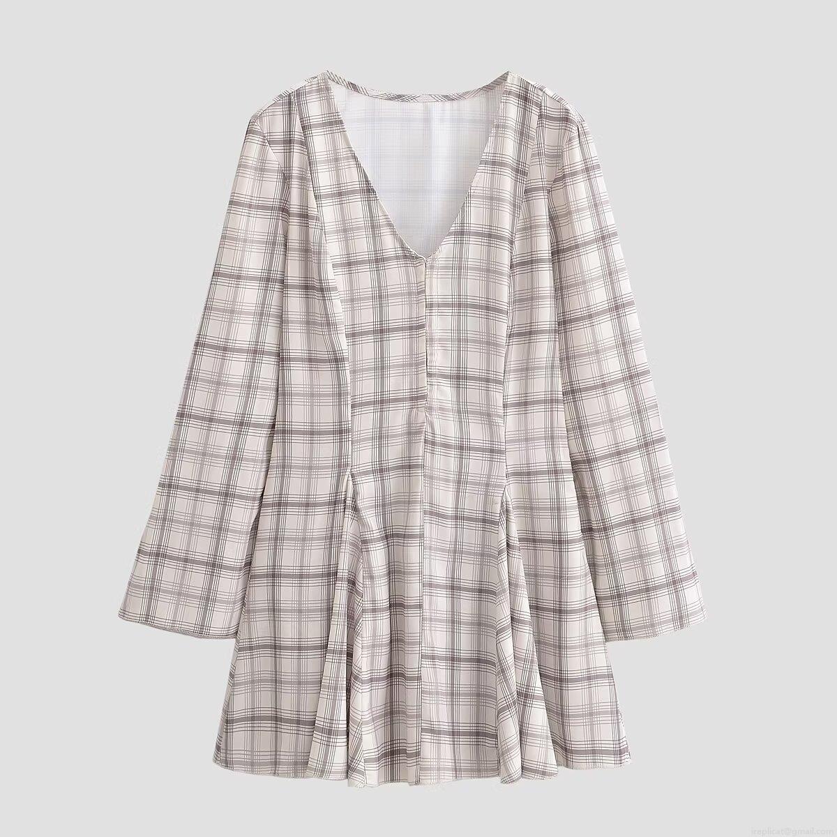 • Women's V-Neck Plaid Long Sleeve Mini Dress Sexy High Waist A-Line Checked Ruffle Dress Casual Party Fashion Clothing Elegant Outfits