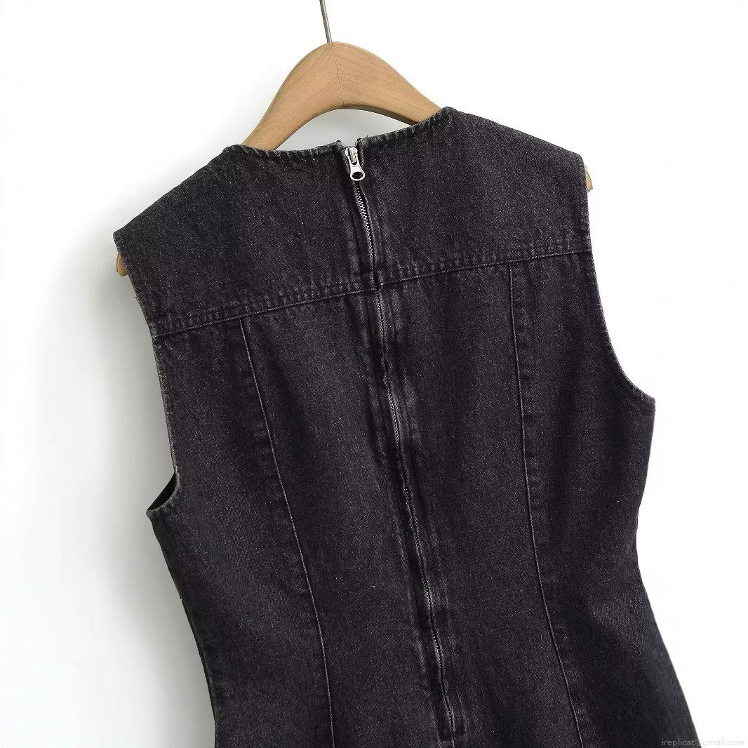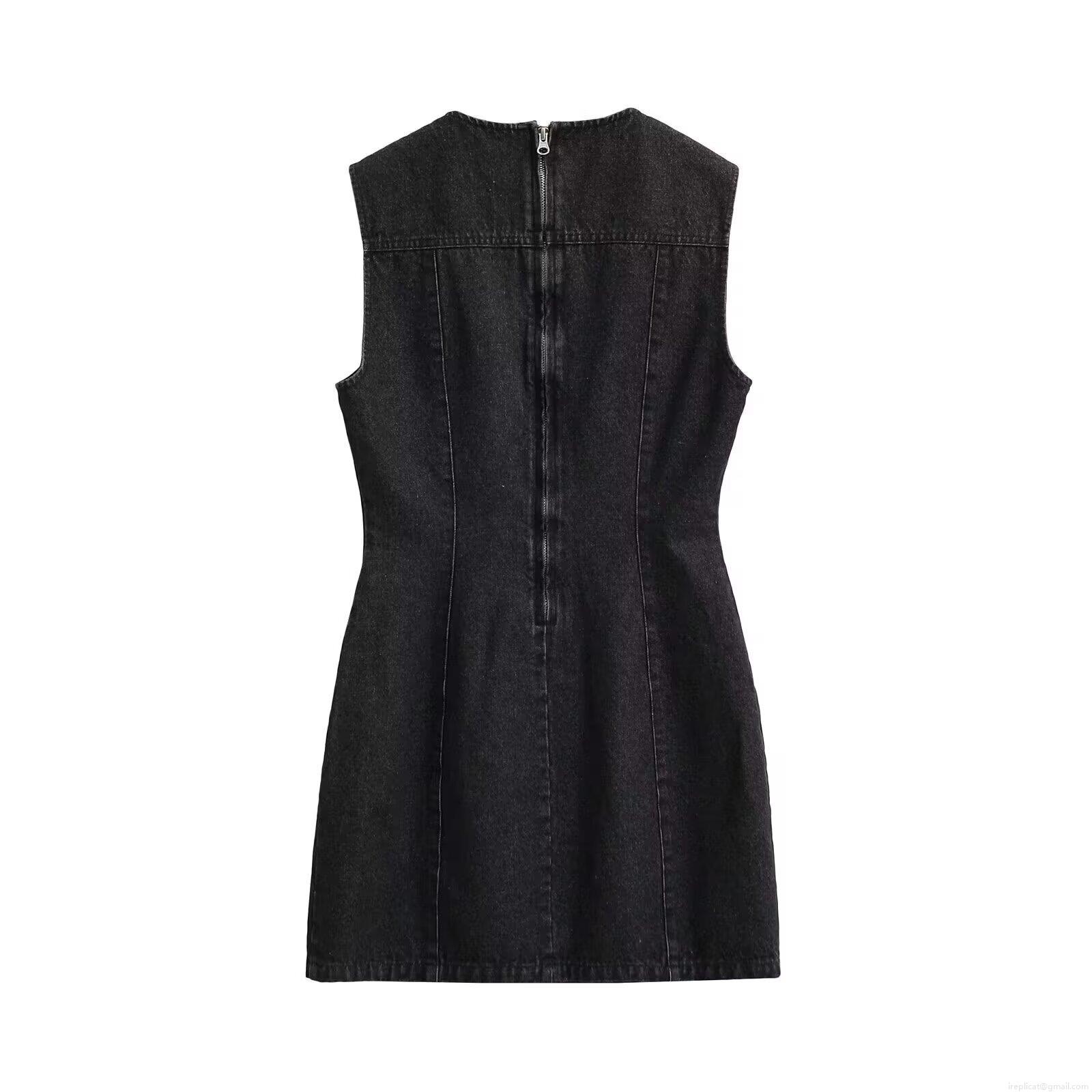 Women's Washed Black Denim Sleeveless Mini Dress Sexy Bodycon Slim Fit Round Neck Back Zipper Short Sun Dress Fashion Summer Party Clubwear