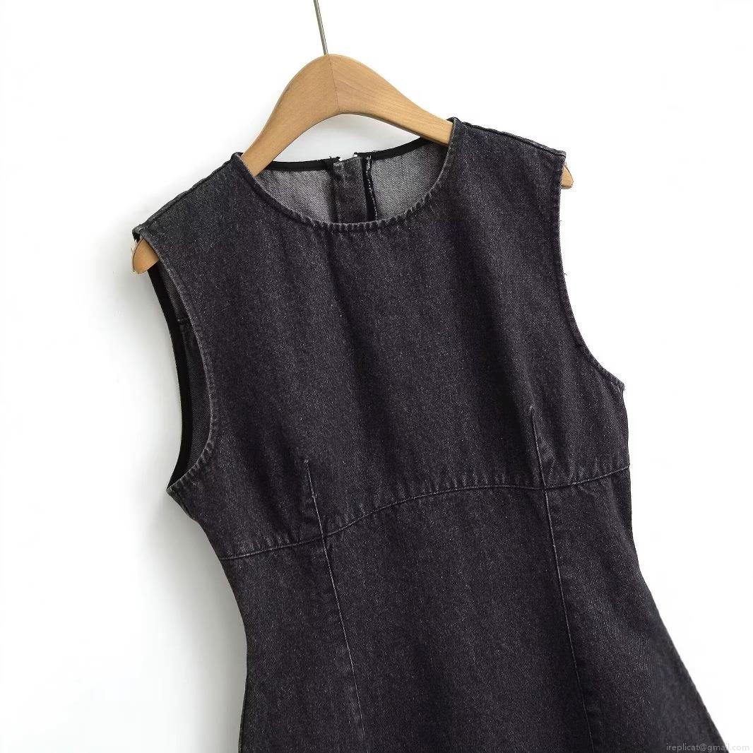 • Women's Washed Black Denim Sleeveless Mini Dress Sexy Bodycon Slim Fit Round Neck Back Zipper Short Sun Dress Fashion Summer Party Clubwear