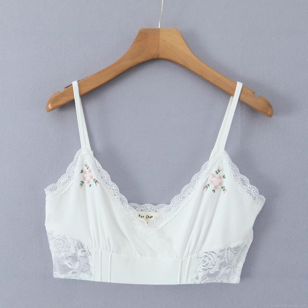 Solid Color, Lace, Embroidery, Wood Ear Edge, V-neck, Flower Embroidery