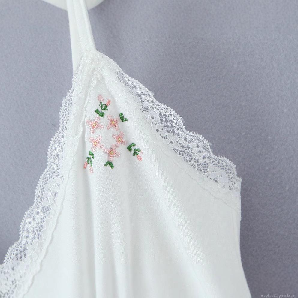 • Women's White Floral Embroidered Knit Camisole Dress Lace Trim V Neck Sleeveless Mini Dress For Summer Vacation Streetwear Sexy Bodycon Sundress