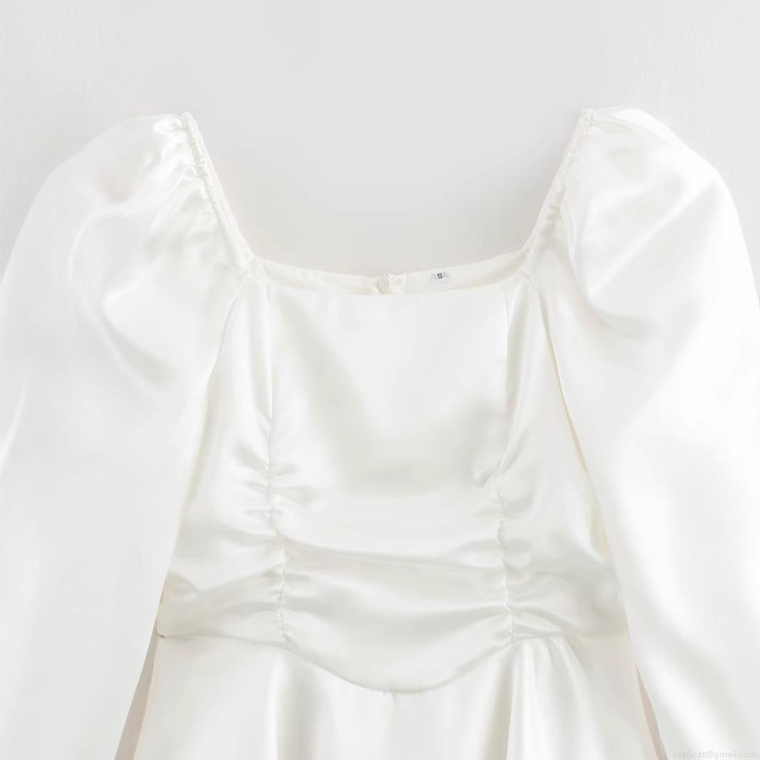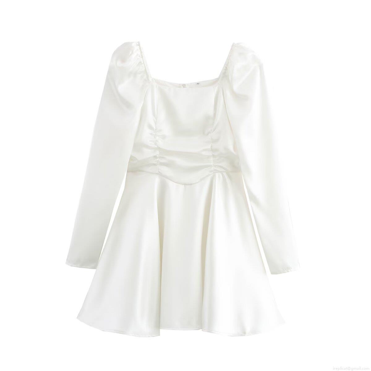 • Women's White Satin Long Sleeve Dress Elegant Square Collar Puff Sleeve Ruched Waist A-Line Mini Dress For Cocktail Party Street Style Fashion Chic Gown